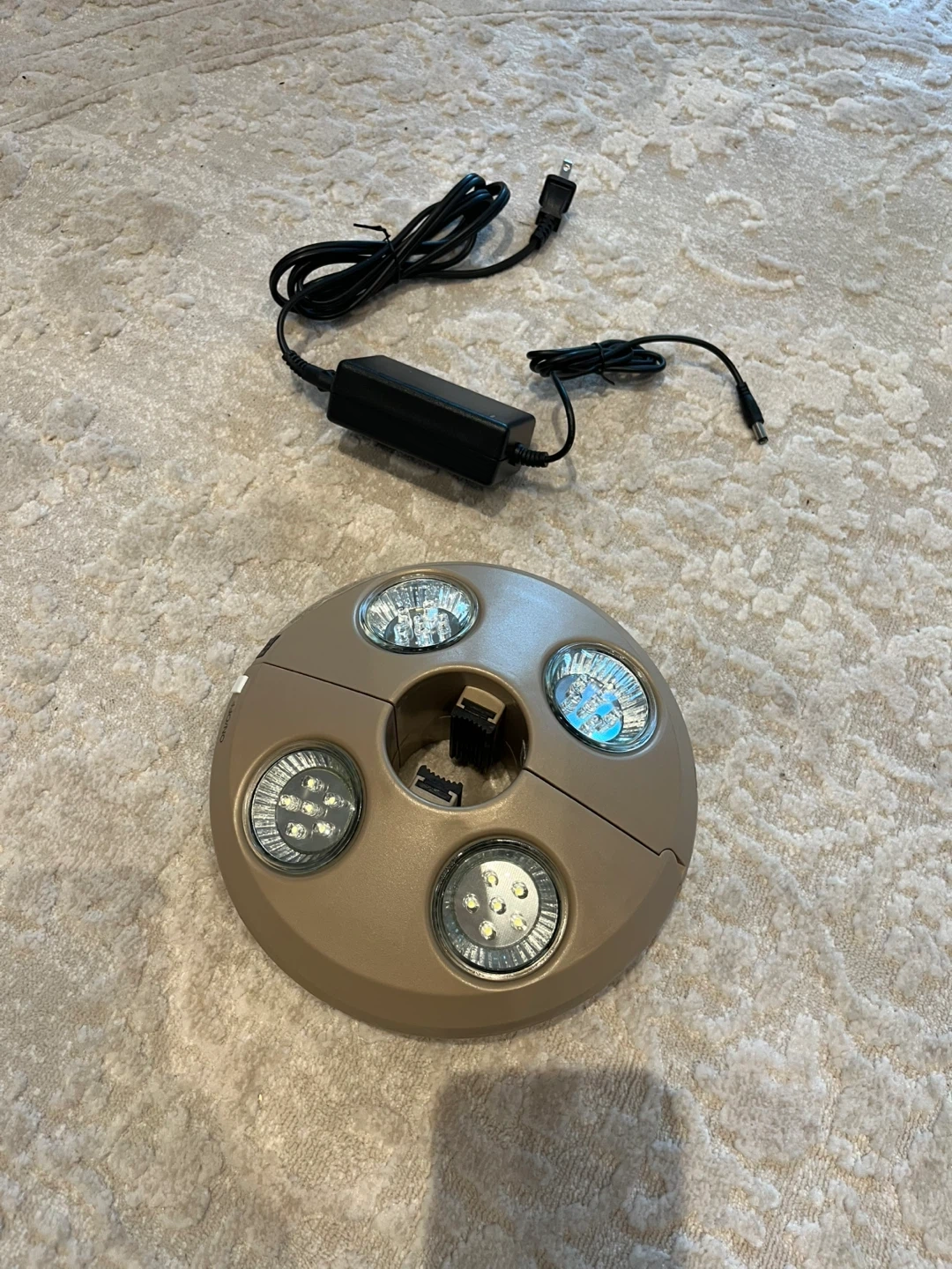 18Treasure Garden Vega Battery Rechargeable Umbrella Light fits 8 inch diameter weight is 3 lbs charge time is approximately 6 hours and lights up to 5 hours on full charge. Excellent condition.