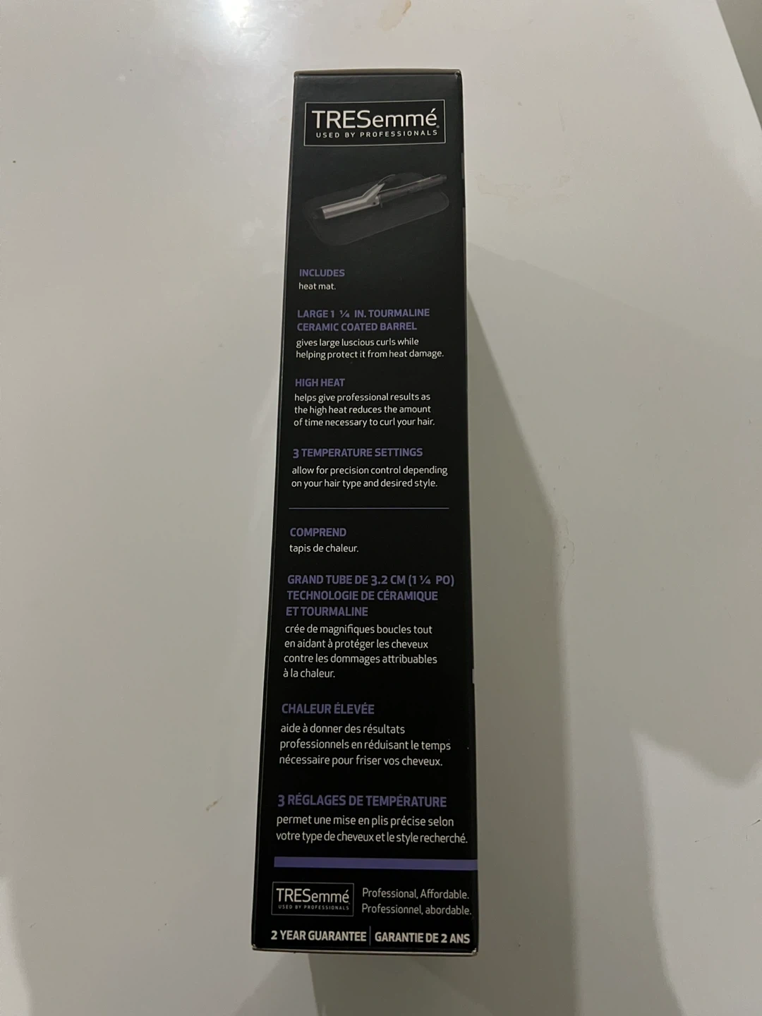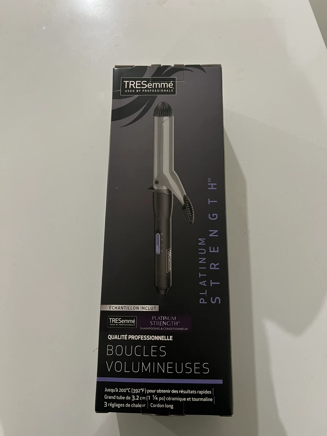 I'm selling a brand new TRESemmé Platinum Strength Curling Iron! It features a large 1 ¼ inch tourmaline ceramic coated barrel to protect your hair from heat damage. It also has 3 temperature settings for precision control depending on your hair type and desired style. Includes a heat mat and comes in the original box. BRAND NEW UNOPENED, public meetup!