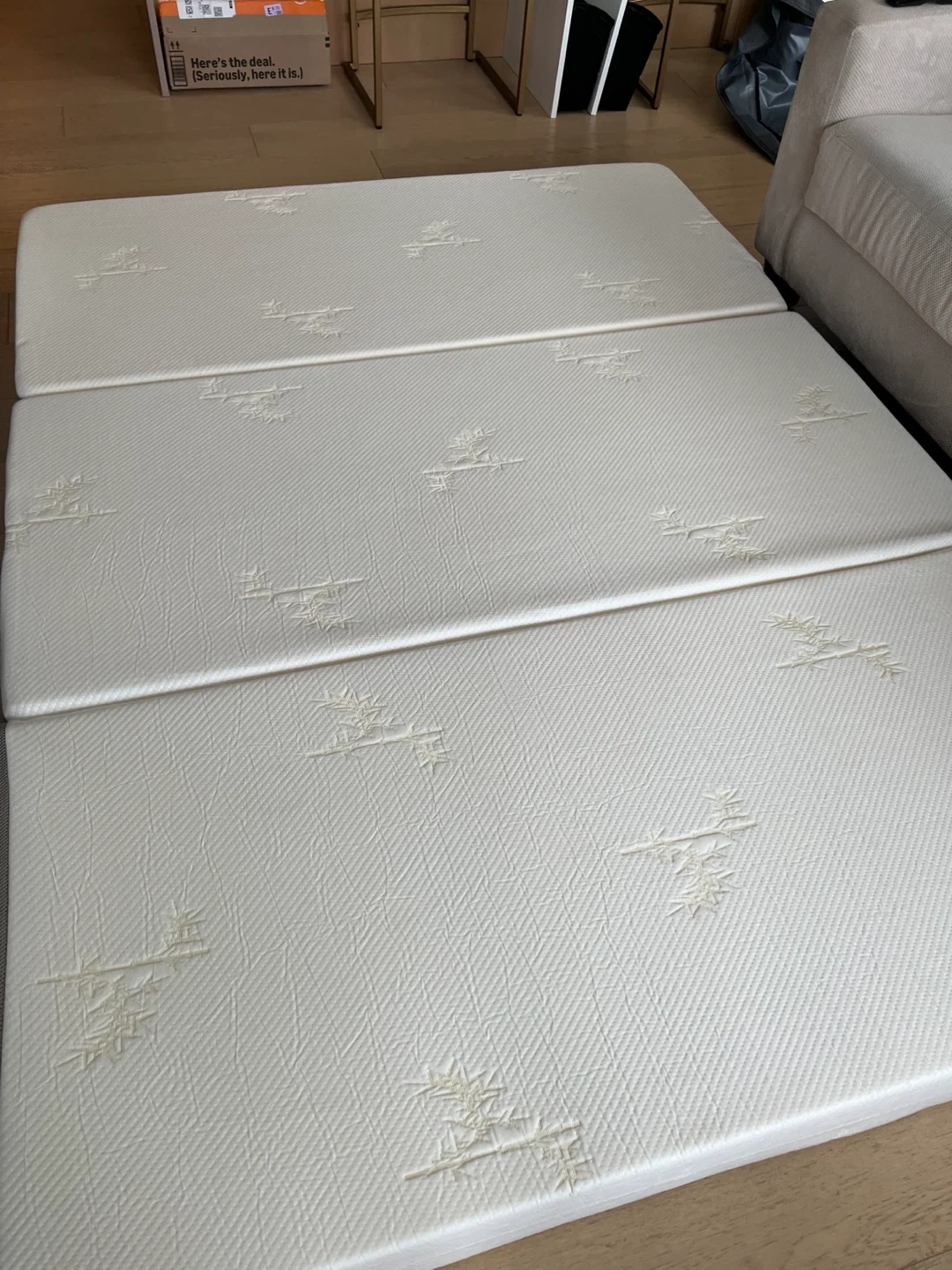 107Selling a Milliard tri-folding memory foam mattress that's in great shape! It comes with a convenient gray storage cover, making it easy to store and transport. This mattress is perfect for guests, camping, or small living spaces. The mattress folds into three sections for compact storage when not in use. The cover has handles for easy carrying. Used for only a couple of times.