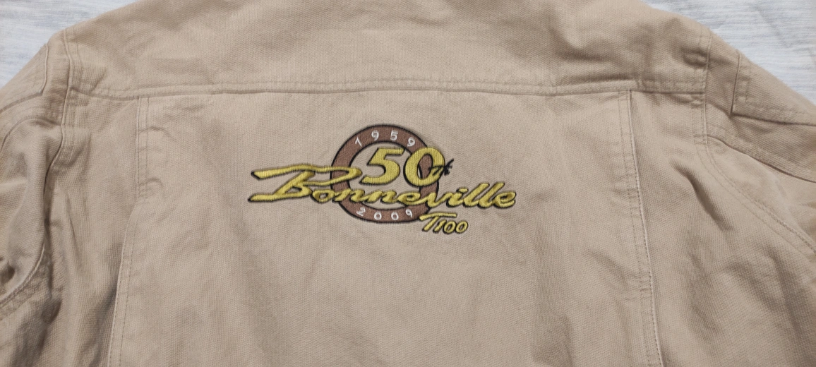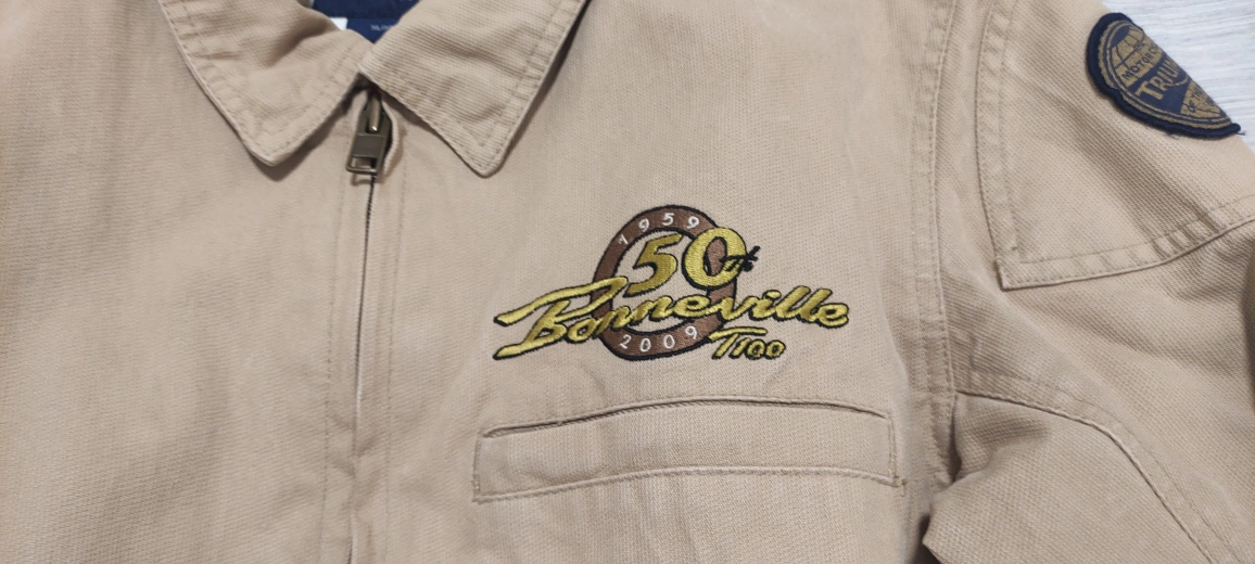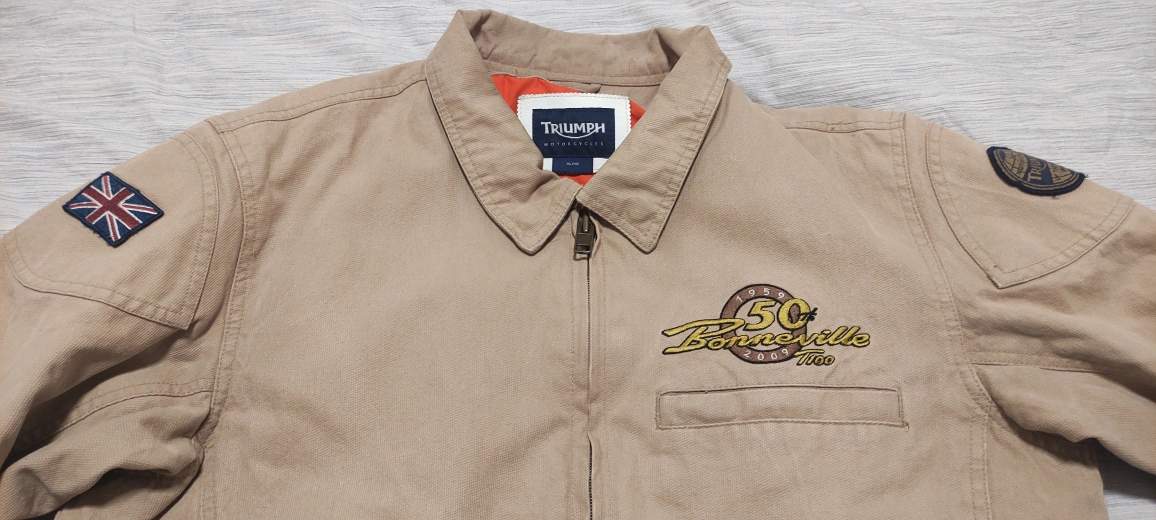 I'm selling a Triumph Motorcycles Bonneville jacket in size XL/XG. This jacket features a unique design celebrating the 50th anniversary of the Bonneville T100. It's a stylish and comfortable jacket for any motorcycle enthusiast! BRAND NEW CONDITION!