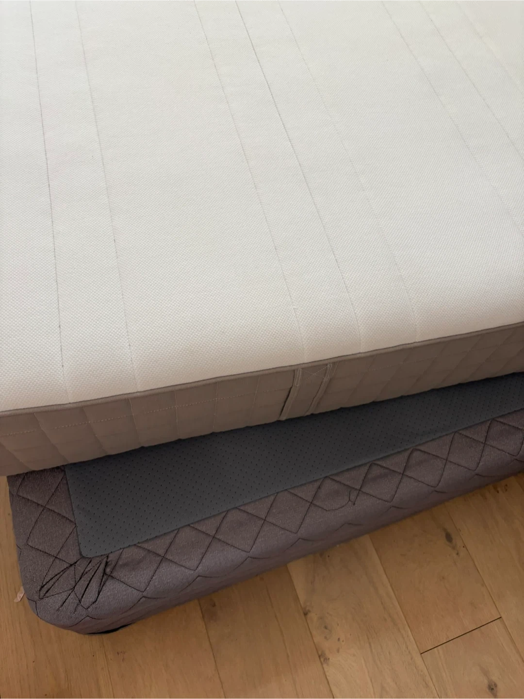 It features a quilted grey fabric on the sides Provides good support for a comfortable sleep.