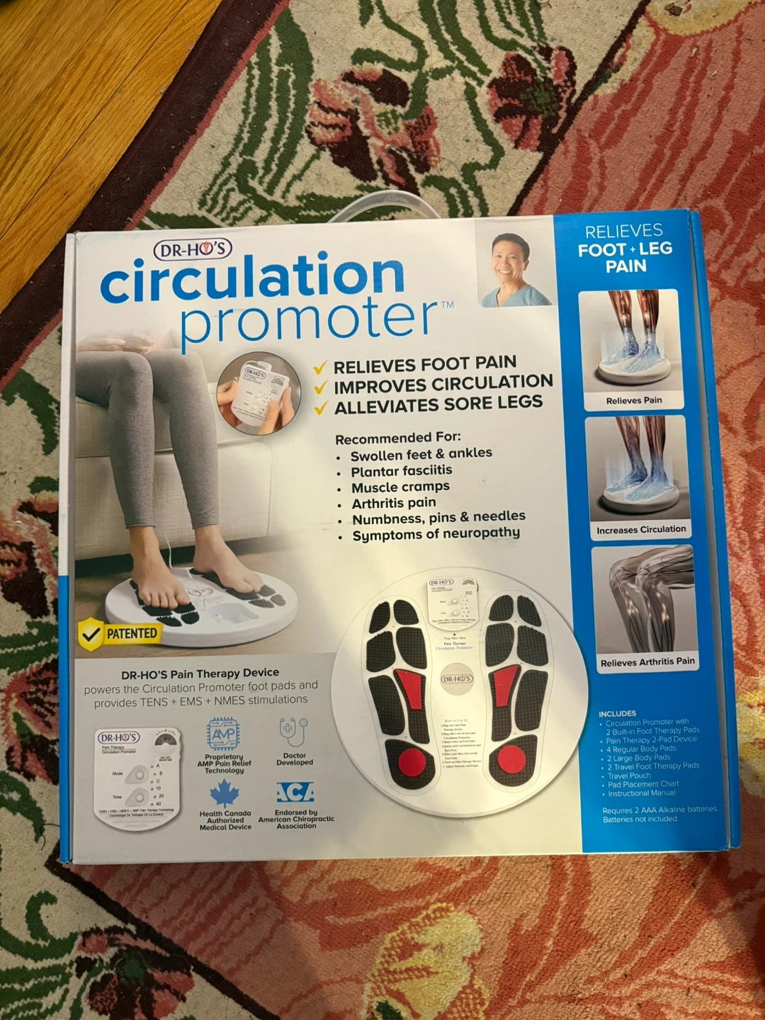 I'm selling a Dr-Ho's Circulation Promoter! This device helps to relieve foot pain, improve circulation, and alleviate sore legs. It's recommended for swollen feet and ankles, plantar fasciitis, muscle cramps, arthritis pain, numbness, pins and needles, and symptoms of neuropathy. Includes: