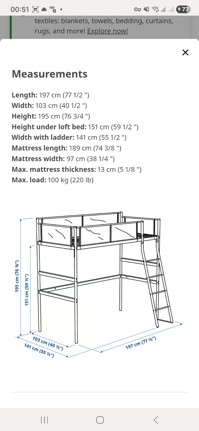 Buy & SellIKEA loft bedIKEA loft bed$148Bought this from IKEA in August 2025, used just few times,. Paid $300 plus tax. ConditionLike newWHERE TO MEETCheck LocationView MapSELLERverified757349Mount Hope600 reviews1 chats·2 favorites·27 viewsSEND CHAT TO SELLERHi 757349! I’m interested in your listing.Hi 757349! I’m interested in your listing.Get the Karrot app to chatSign In to chat