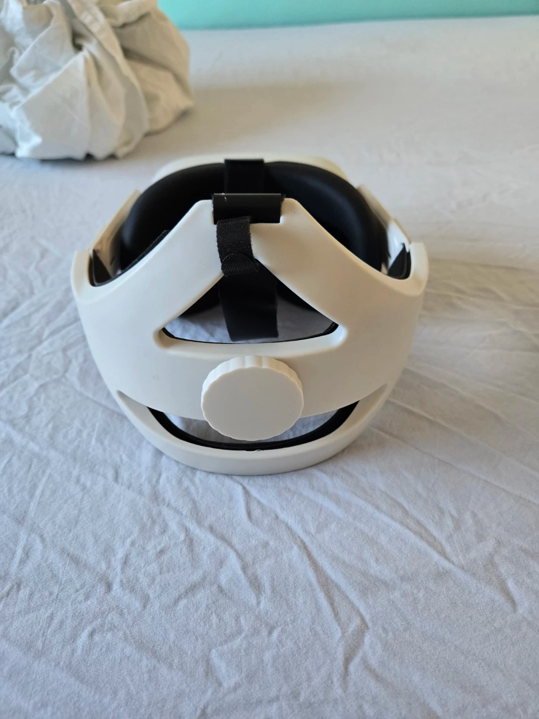 This is an Oculus Quest 2 virtual reality headset. It's a white headset with adjustable straps. It's great for immersive gaming experiences!