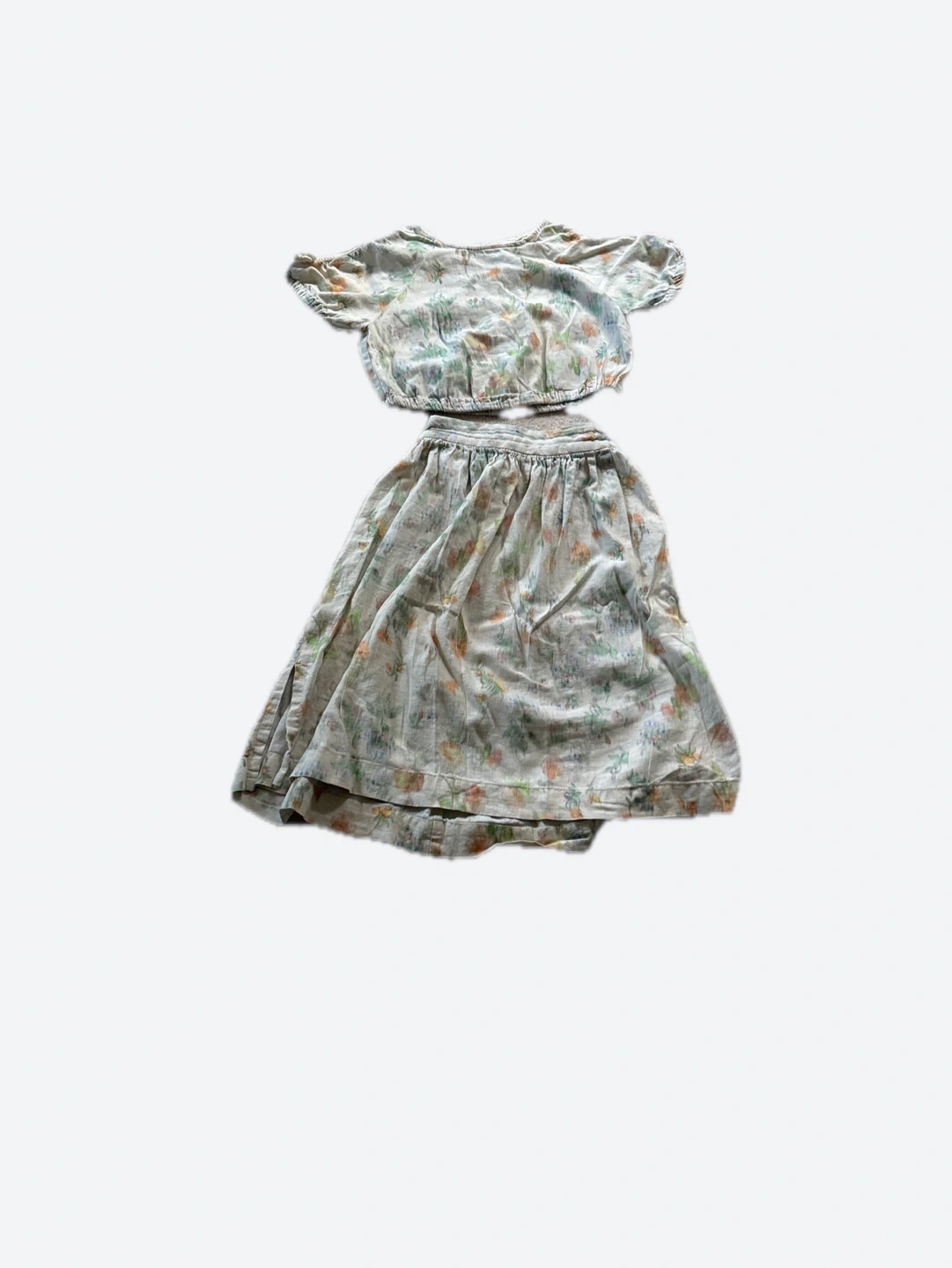 15Selling a cute floral two-piece set! It includes a short-sleeved crop top and a matching skirt. Perfect for summer days!