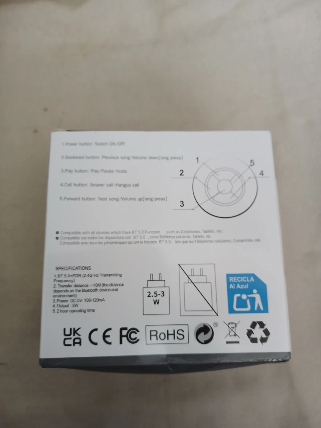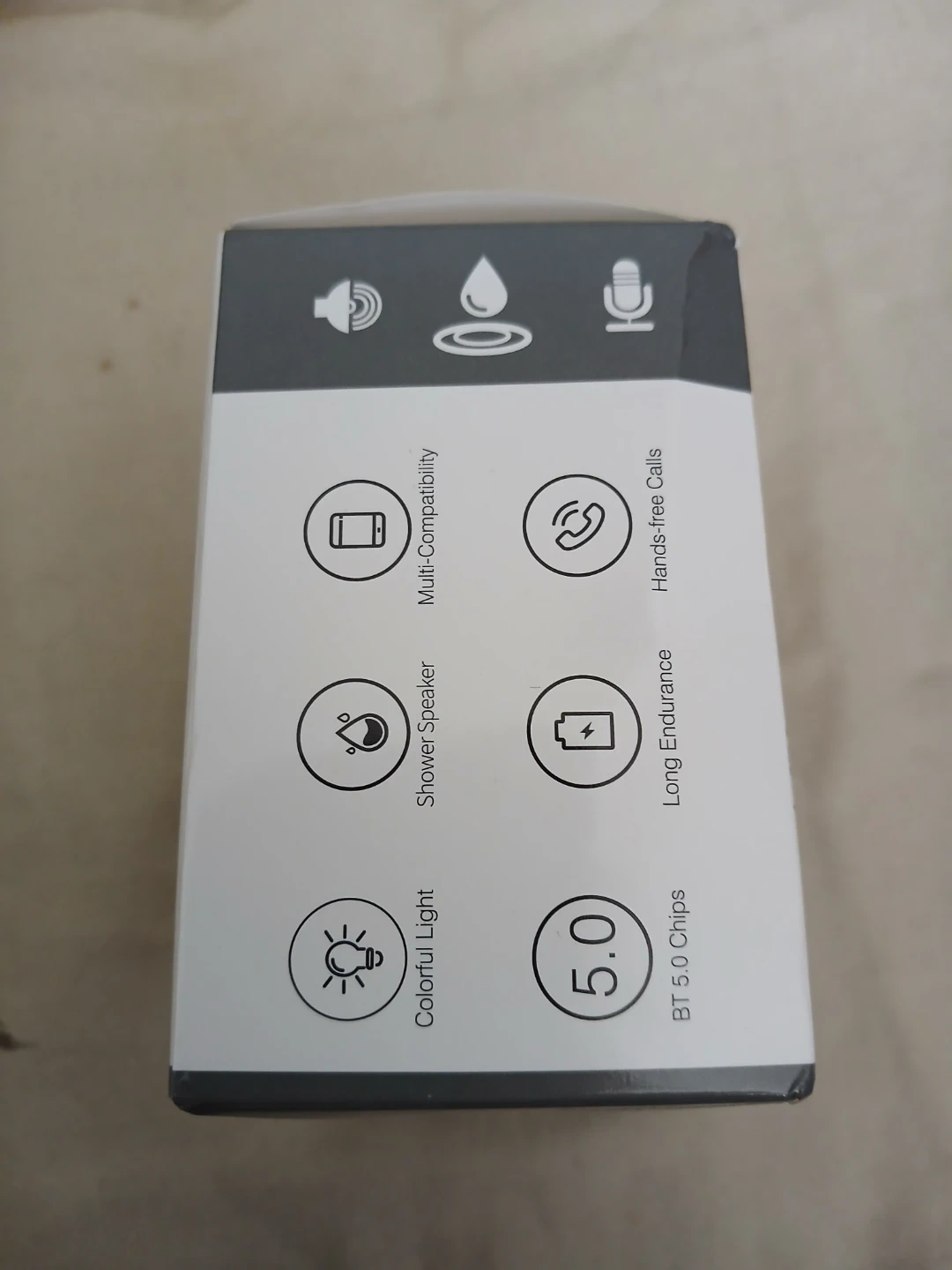 Brand new Compact black splash-proof shower speaker with Bluetooth 5.0 connectivity. Includes USB charging cable and manual. Offers long endurance and hands-free calls. Water-resistant design is great for use in the shower. Cash only. Pick up or meet up in public place. Willing to bargain on the price.