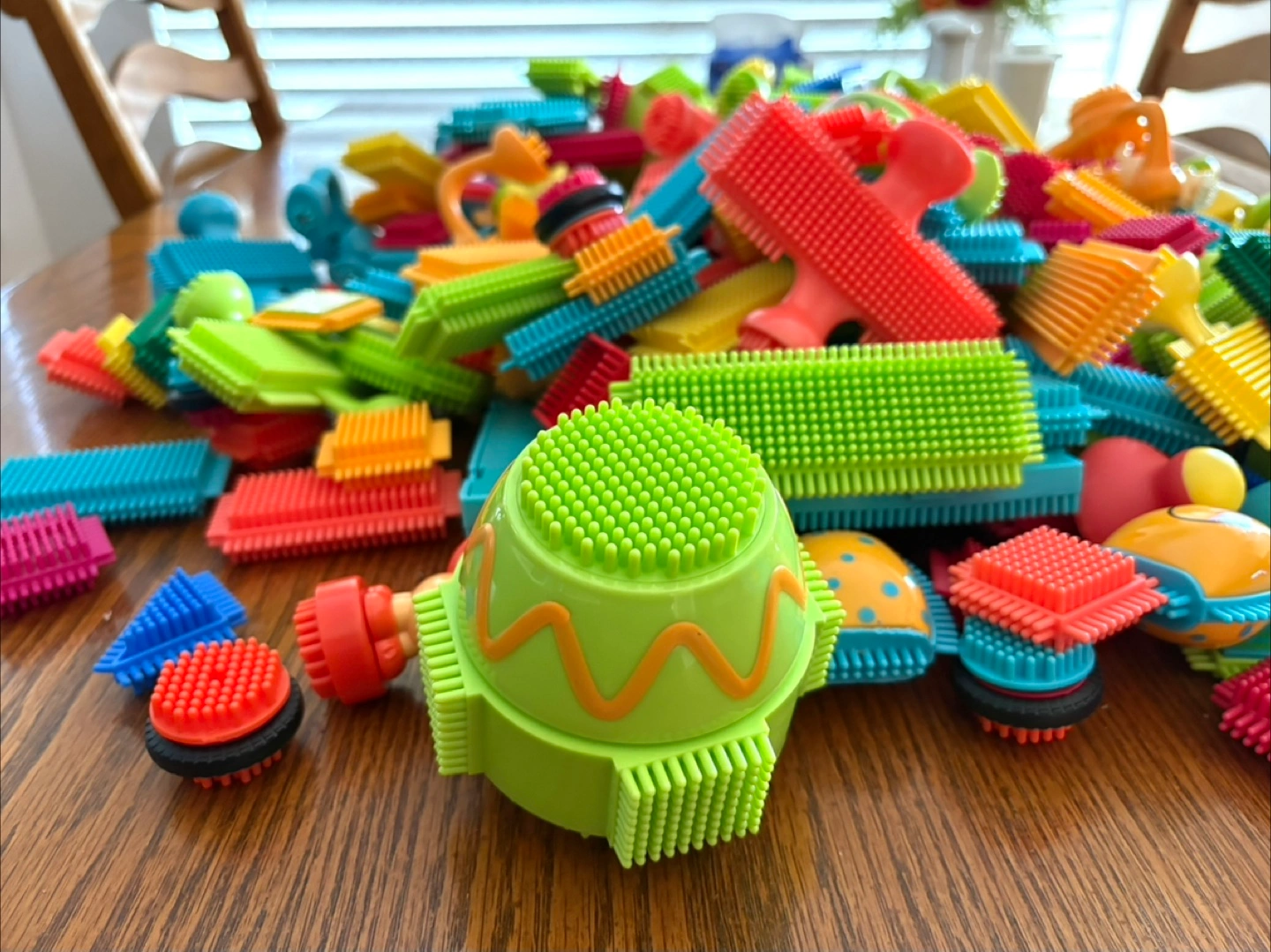 A large assortment (about 3 sets) of colourful bristle building blocks!