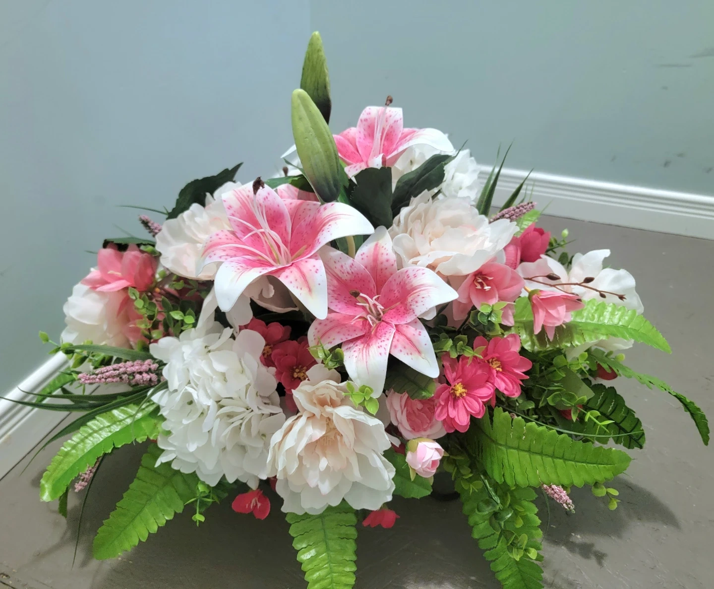 Artificial Flower Arrangement - Pink and White Lilies and Roses