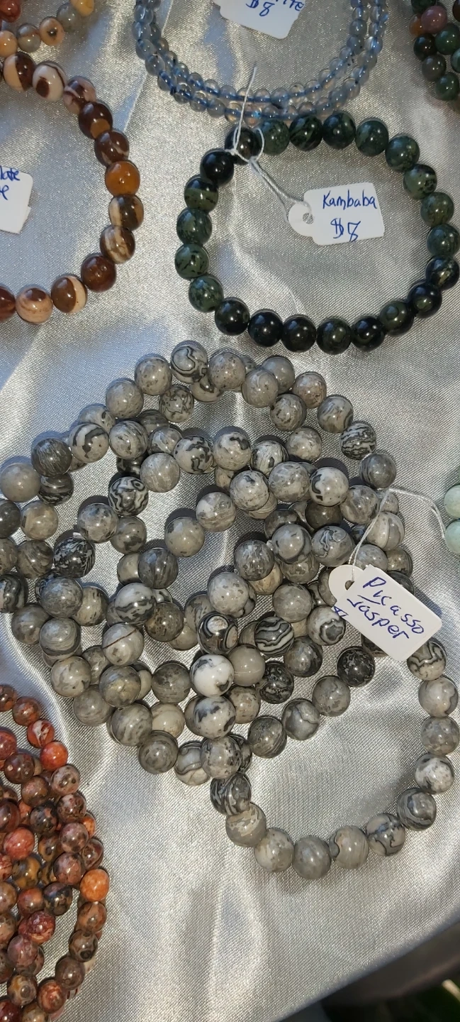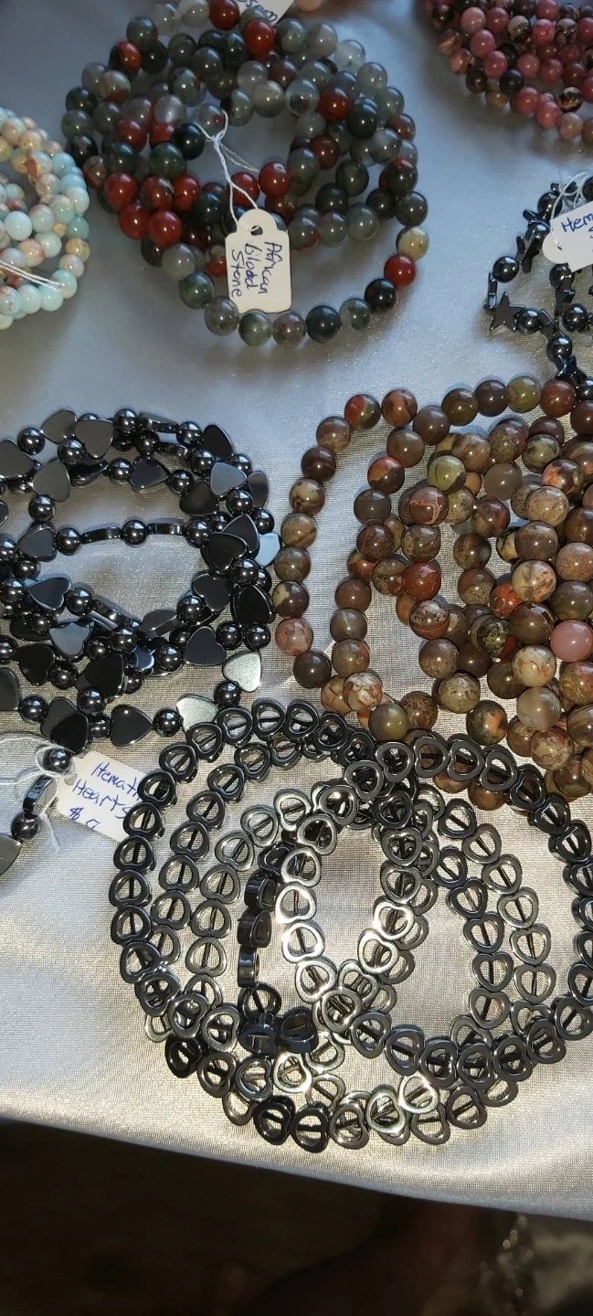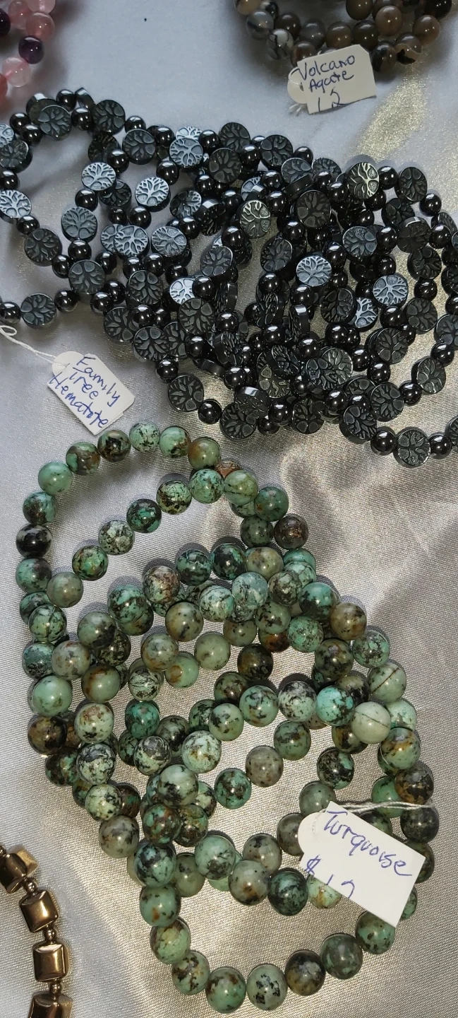 More beautiful bracelets. looking for something specific, I have more. lots of hematite too. These are all natural stone. This selection you see here are all $10 each. Many more to choose from. Pick up in Walkerville
