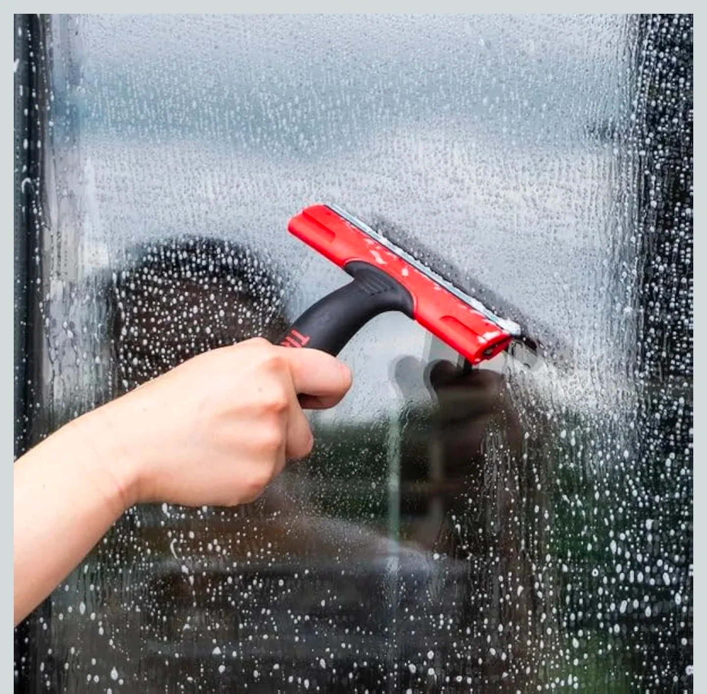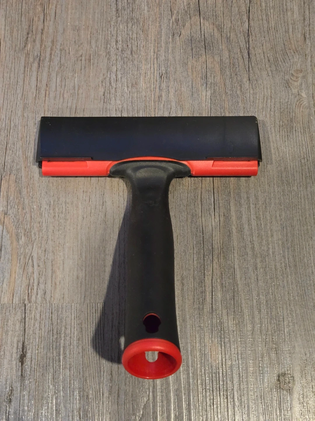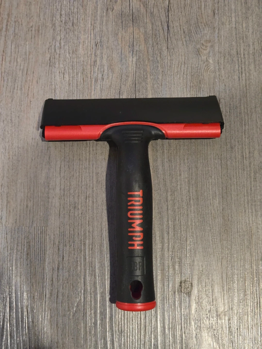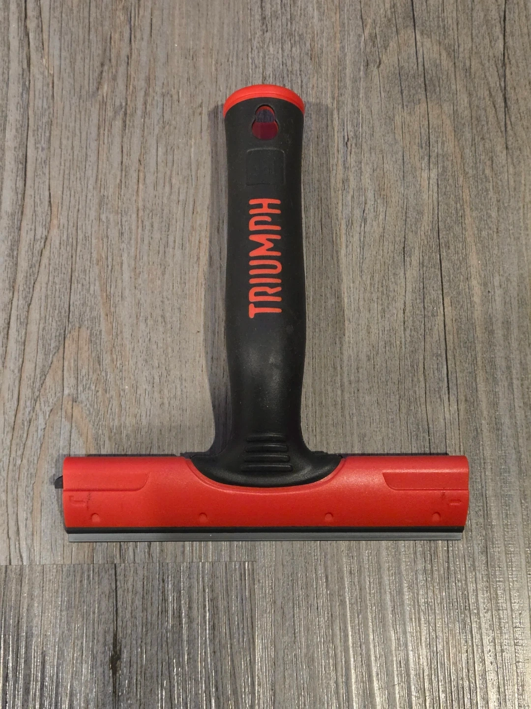 This Triumph scraper tool has a 149 MM width. It's made with a carbon steel blade for effective scraping. The handle is black and red plastic. Great tool for window cleaners.