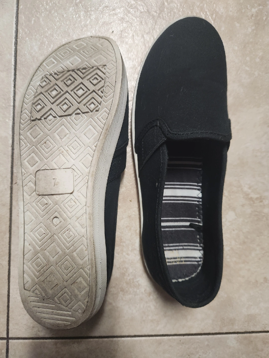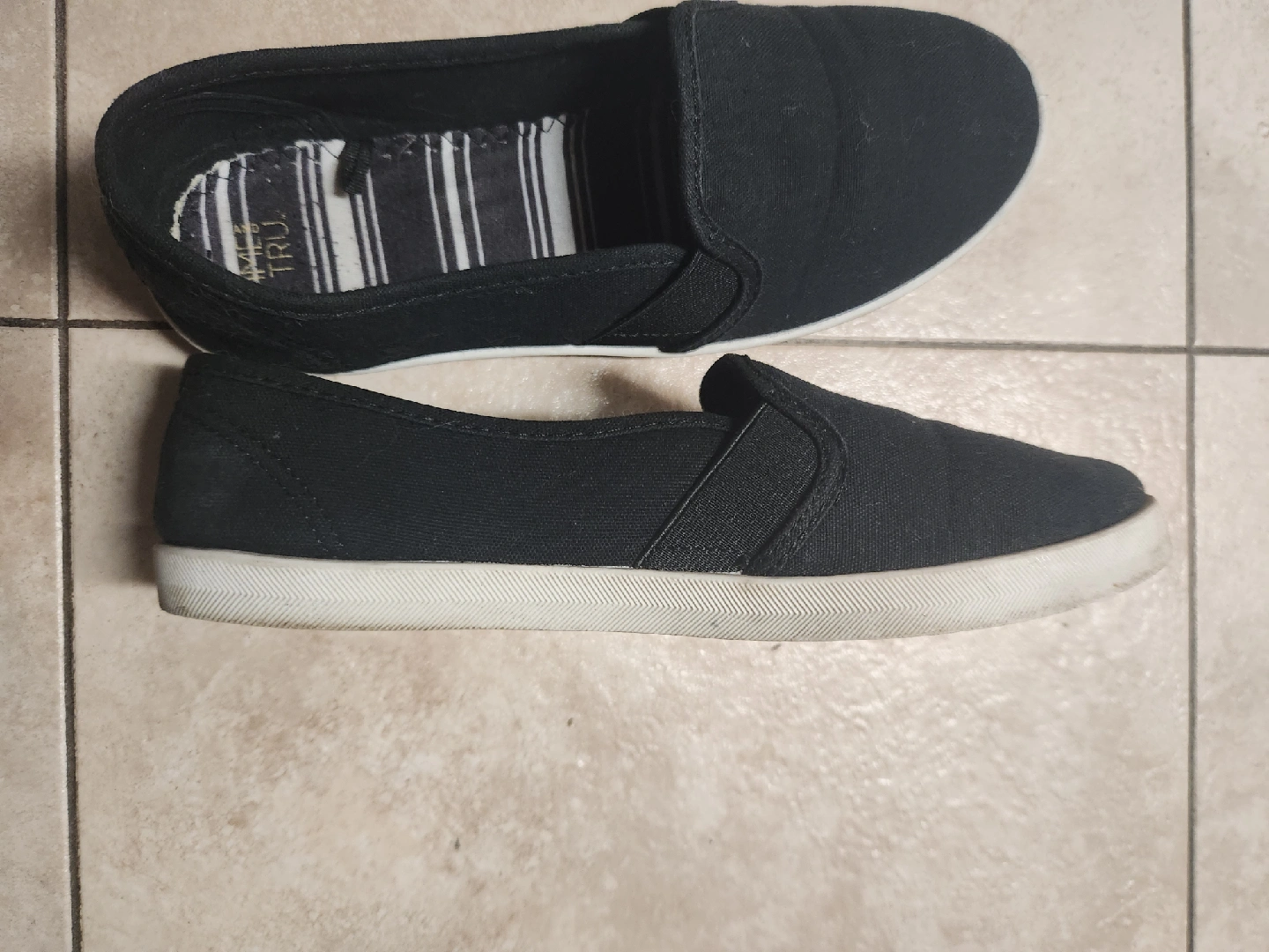 70Selling a pair of black slip-on shoes from TRU in size 7. They're in good used condition. Perfect for casual, only worn briefly a couple of times.