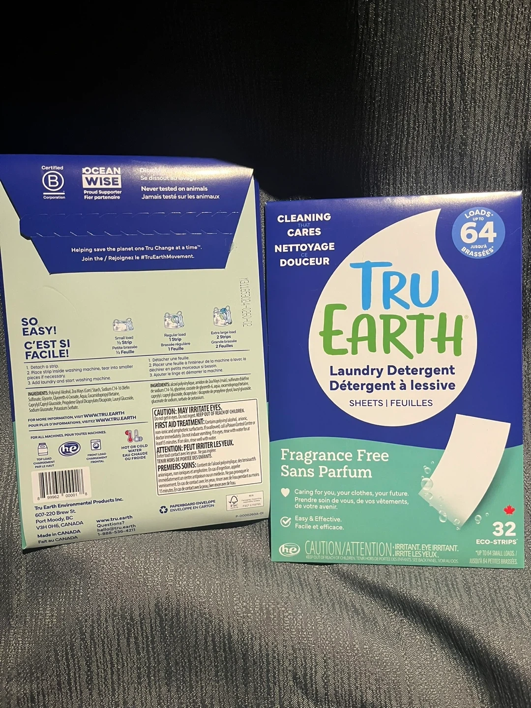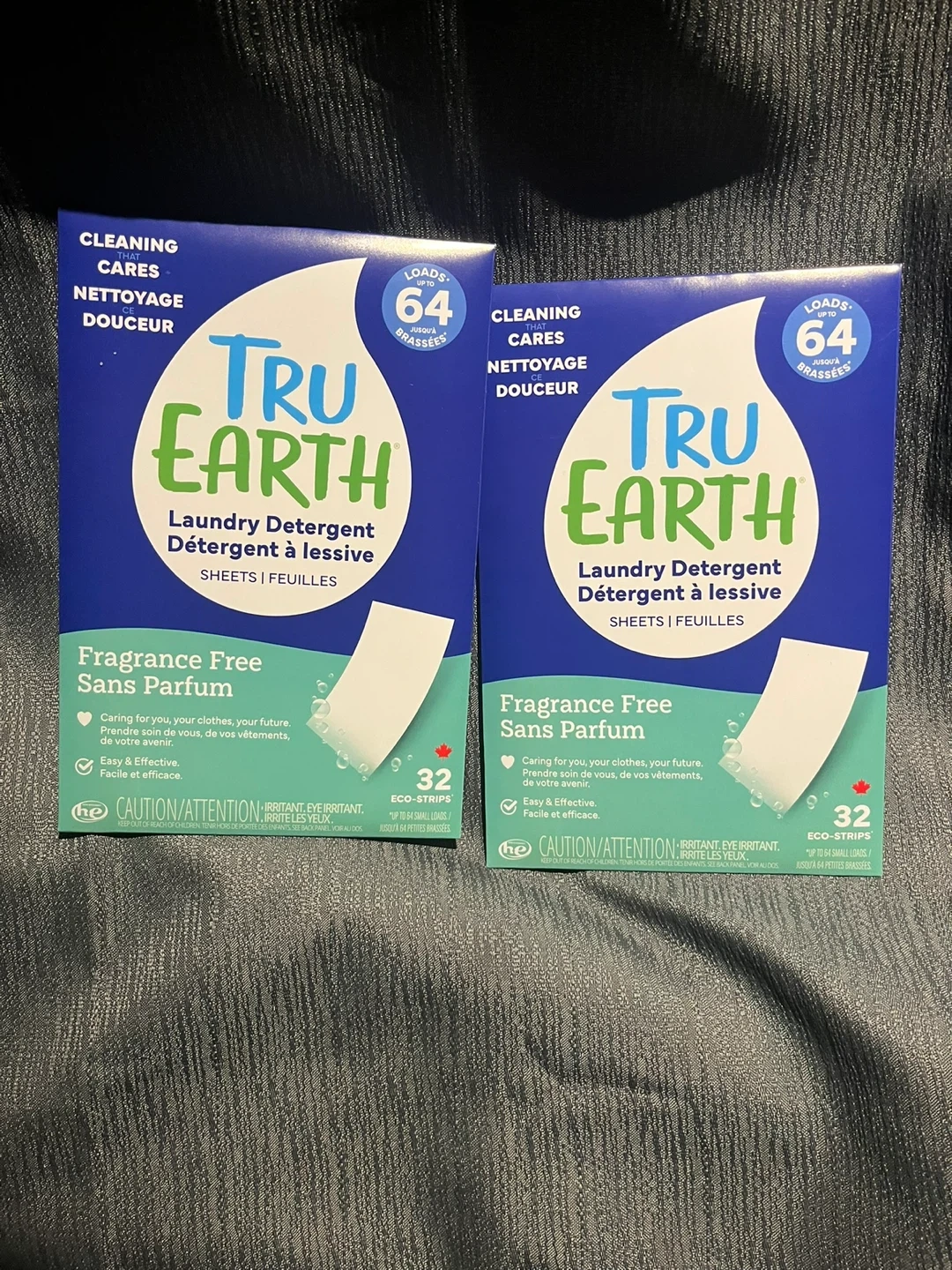 Selling two packs of Tru Earth Laundry Detergent Sheets in fragrance-free! Each pack contains 32 eco-strips, good for 64 loads. These are easy to use and effective for cleaning your clothes. They are also gentle on sensitive skin