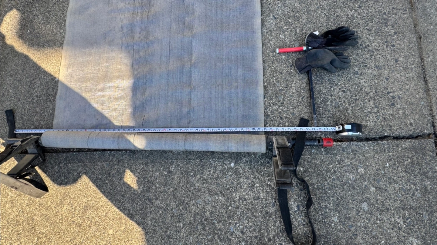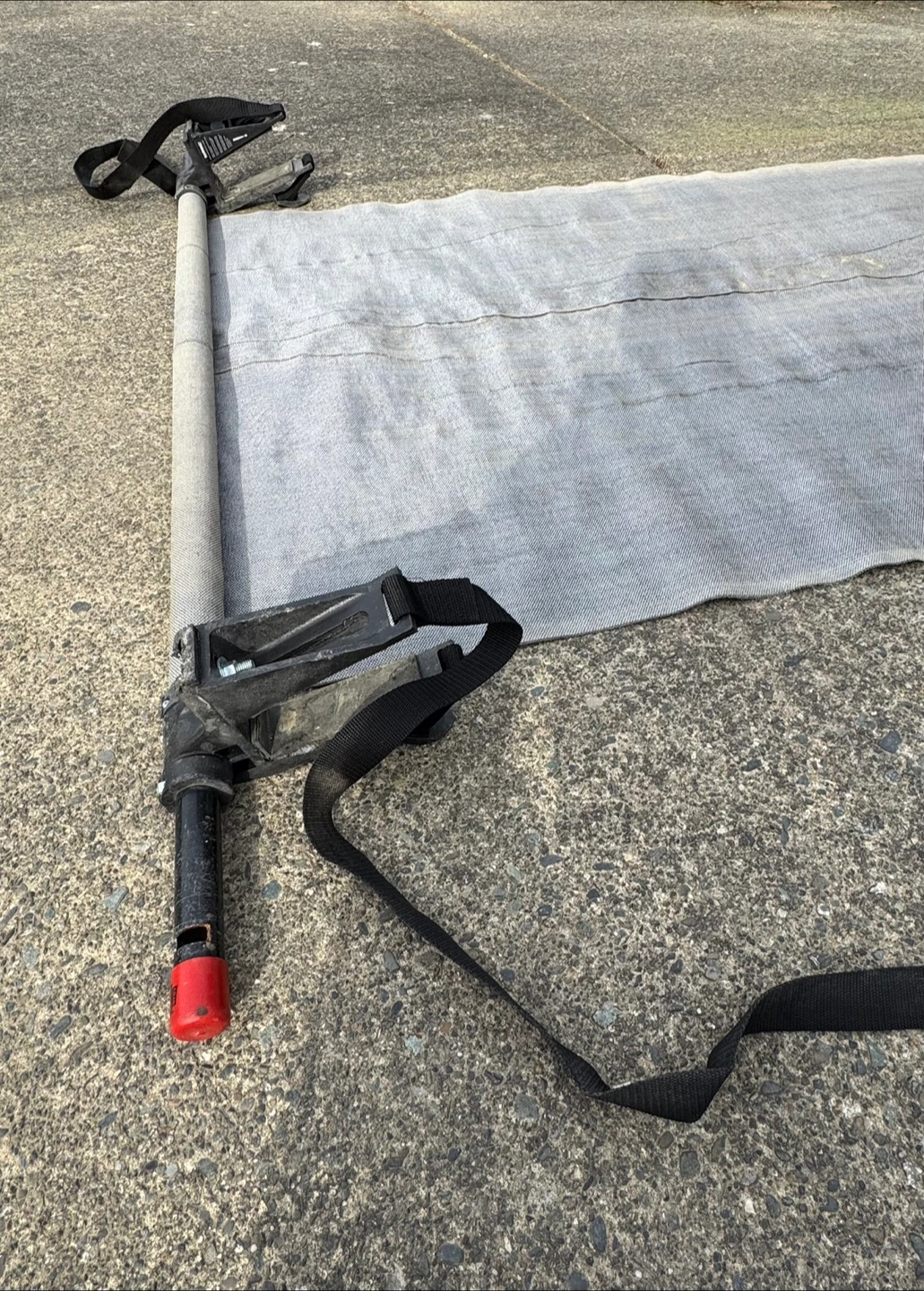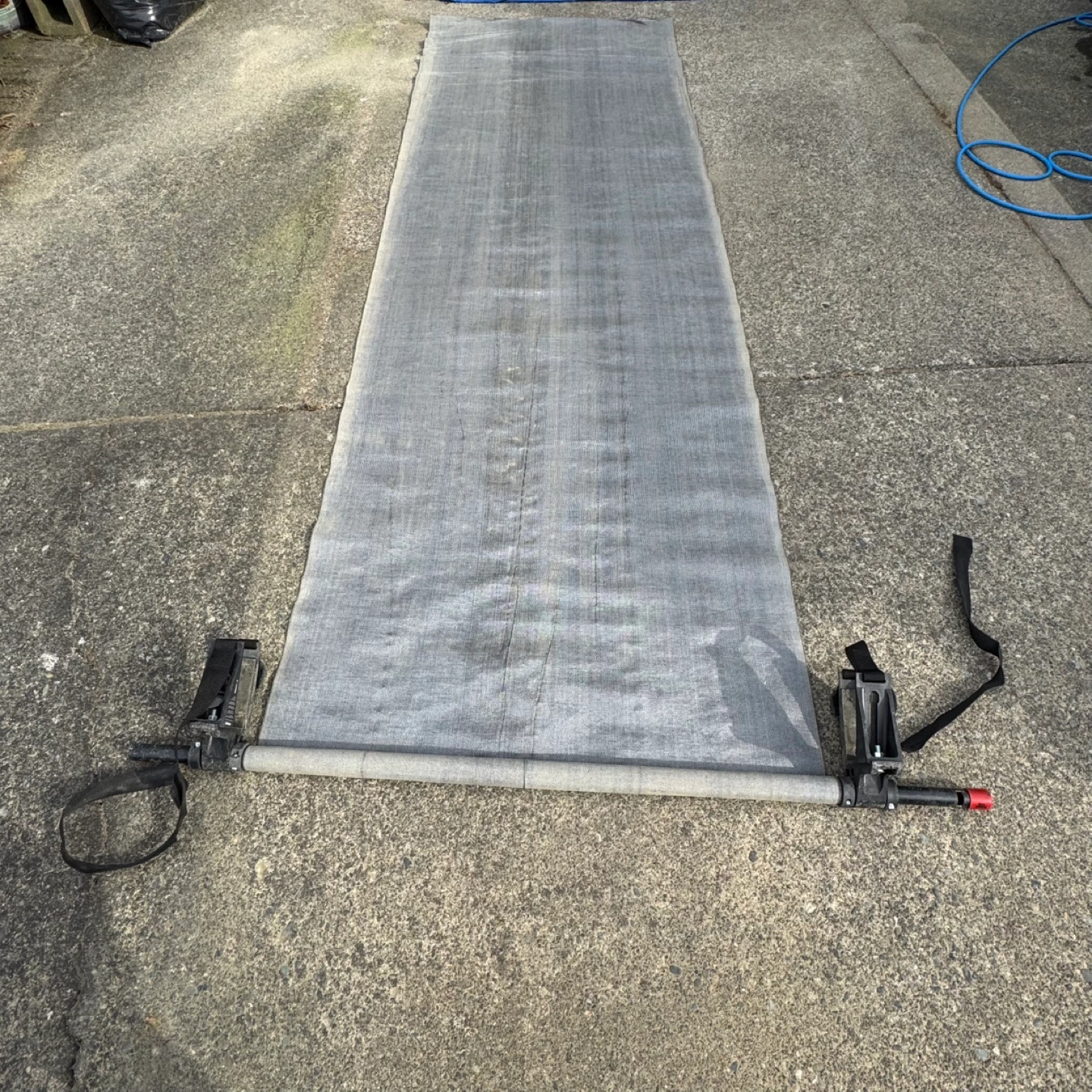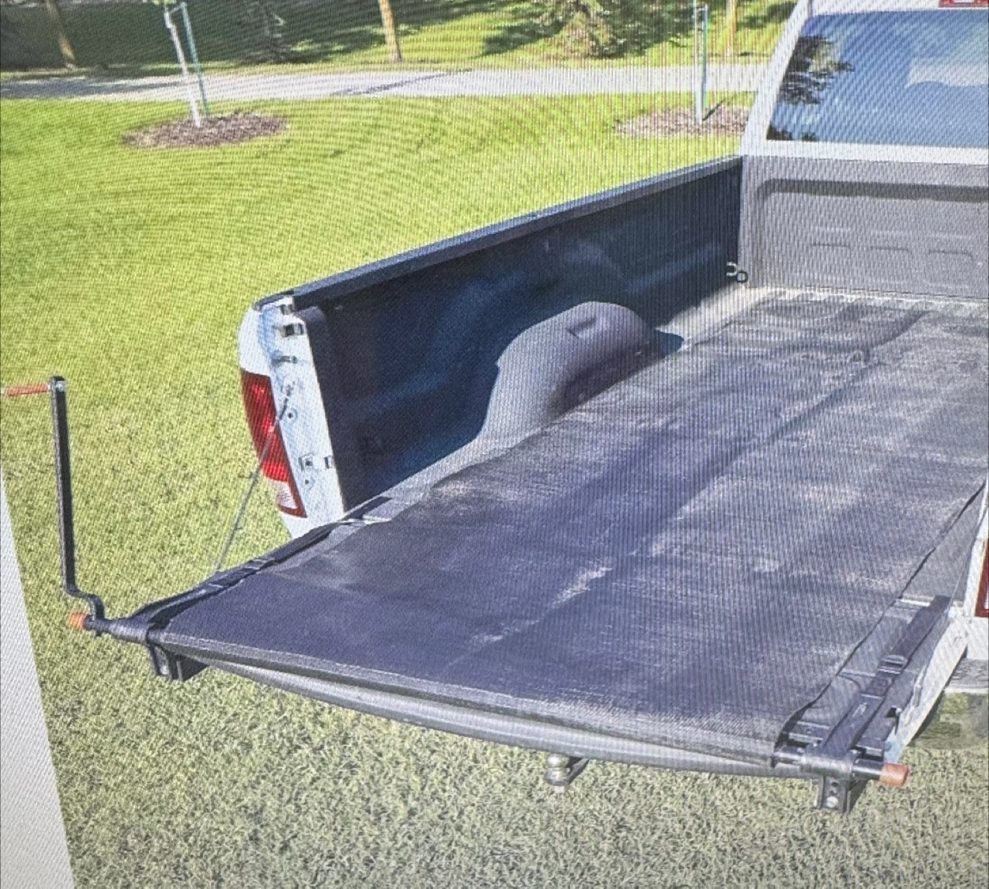 58Sturdy truck cargo unloader. Designed to attach to a truck bed. The mat is rolled up and secured with straps. The design includes a manual crank to retract the mat and unload rocks, dirt, firewood etc. Having this accessory helps unload more easily. Mat width is 41”, overall roll mechanism is 60” wide and the length is over 10 feet long.