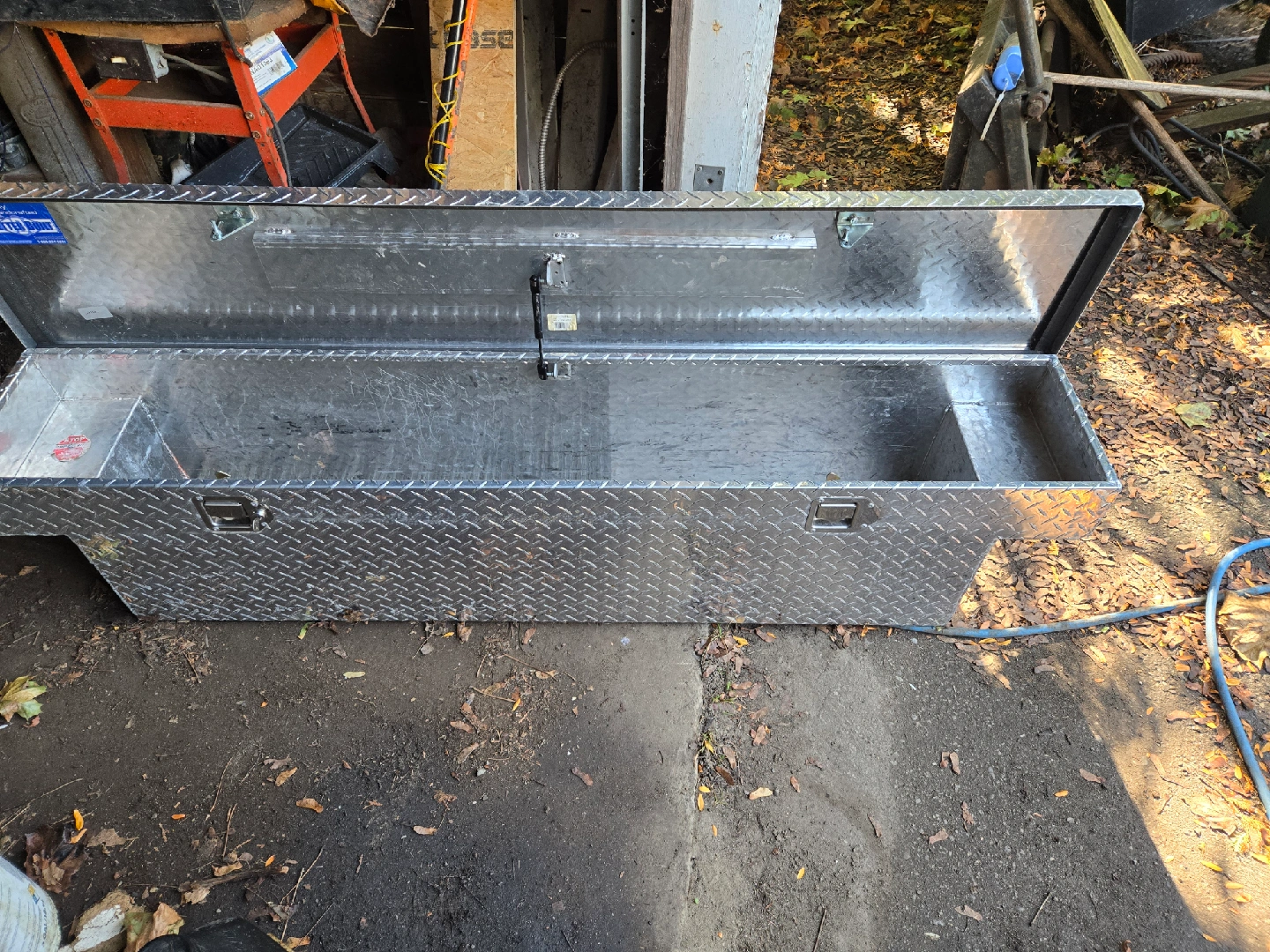 65Selling a truck tool box made of aluminum diamond plate. It's in good condition and ready to be installed in your truck bed. Perfect for storing your tools and equipment securely