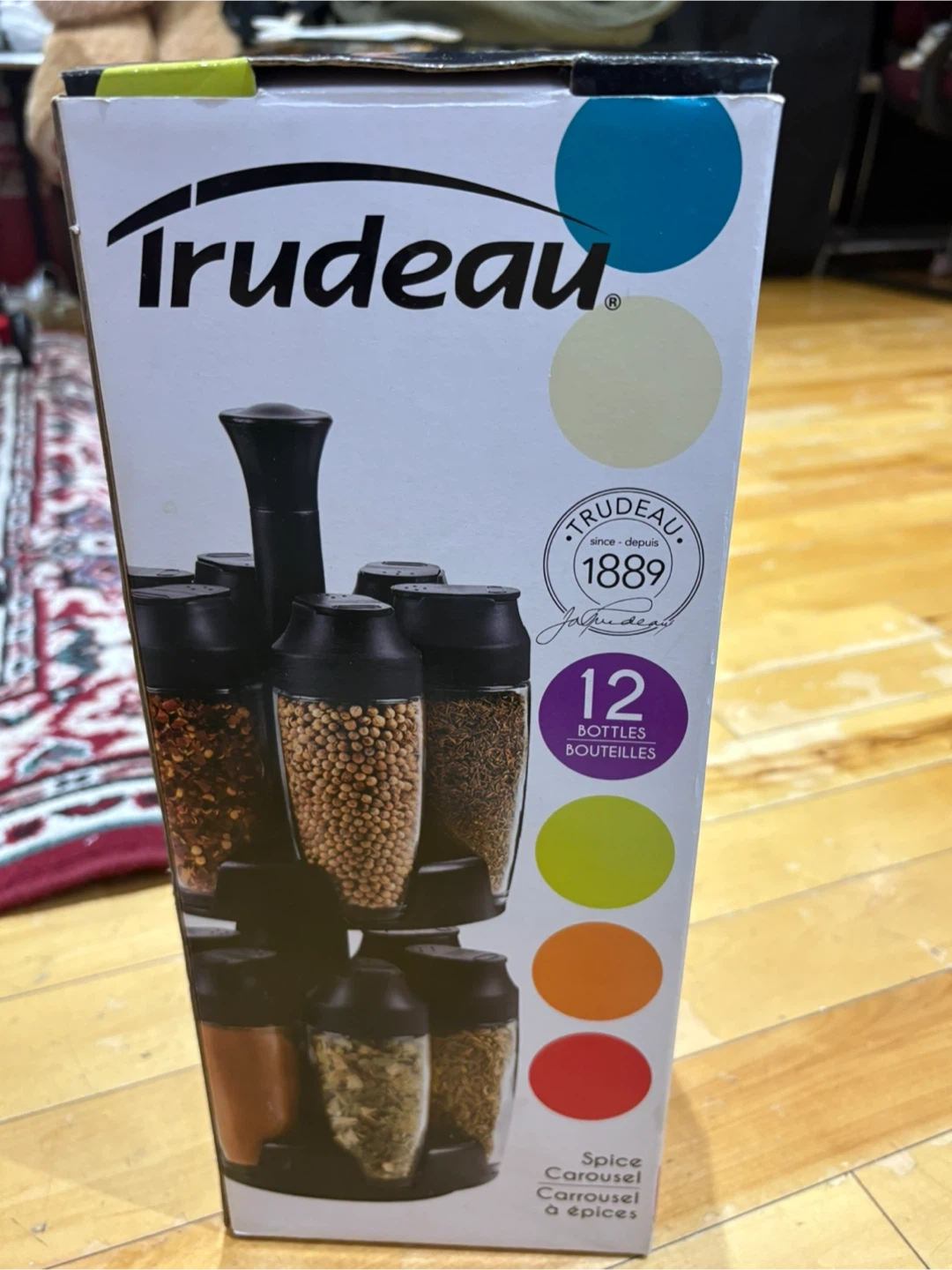 10Selling a Trudeau Spice Carousel that holds 12 bottles of spices. It's in great condition. Perfect for keeping your spices organized and easily accessible in your kitchen!