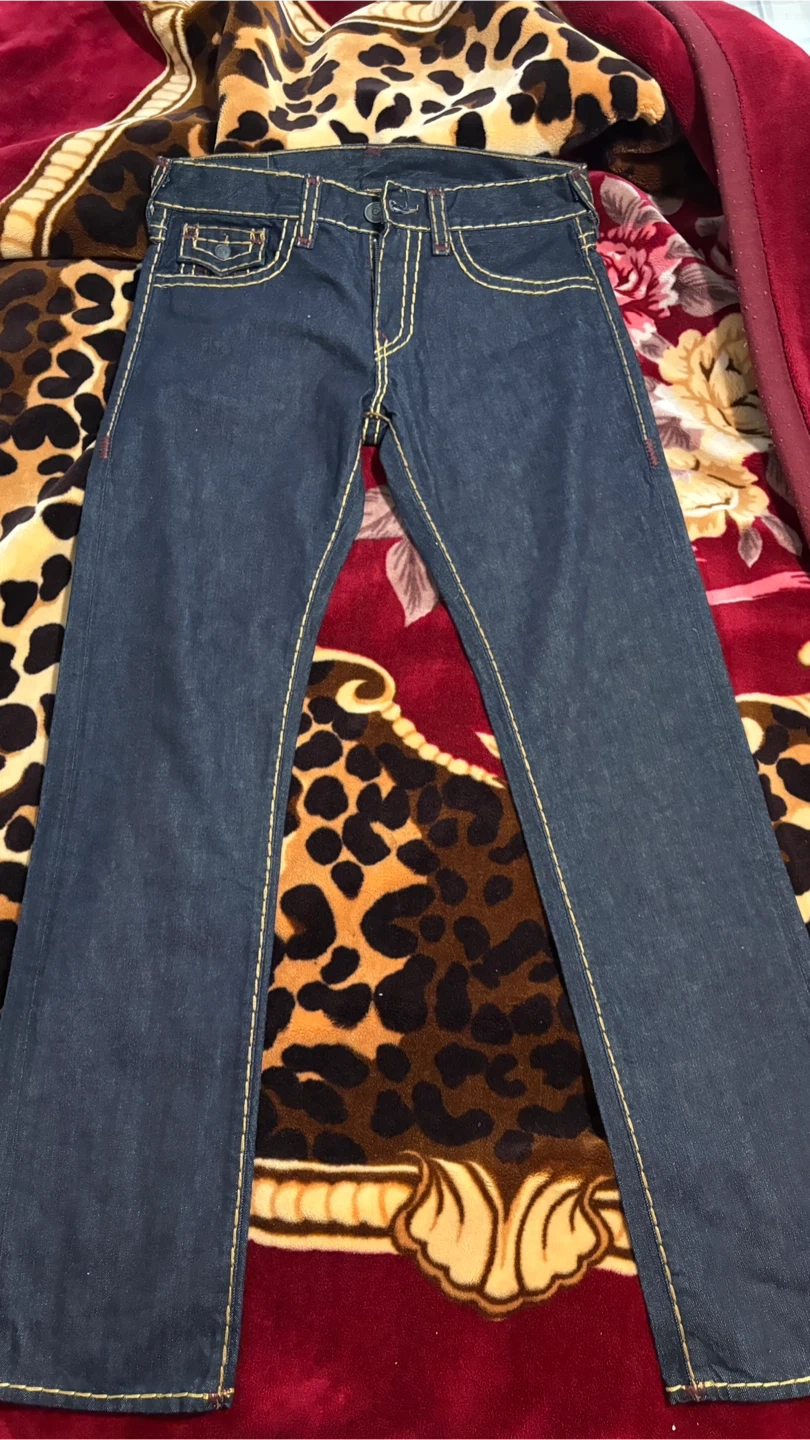 15Selling a pair of True Religion jeans in great condition! They're a size 32 and have the classic True Religion stitching detail on the back pockets. The jeans are made in the USA with a blend of American fabric and imported materials. Perfect for adding a bit of style to your wardrobe!