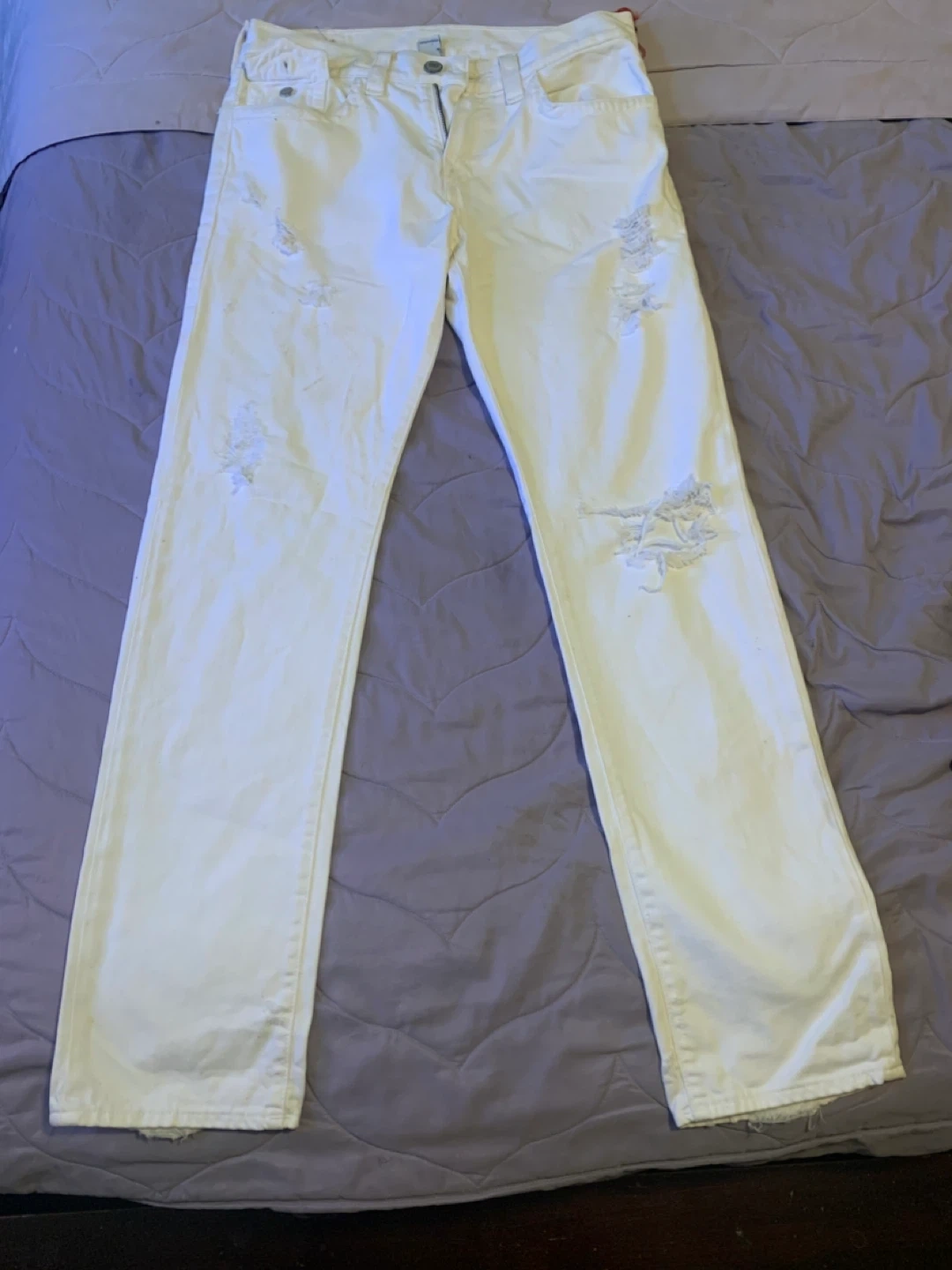 Selling a pair of True Religion jeans in white. They're in good condition and ready for a new home!