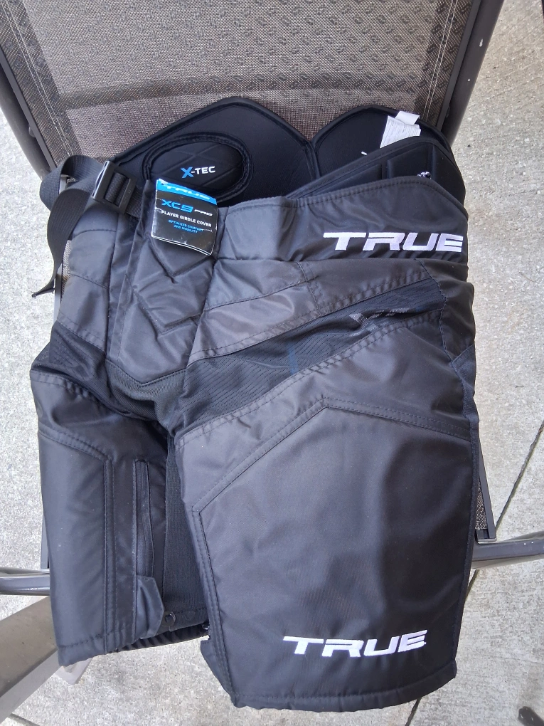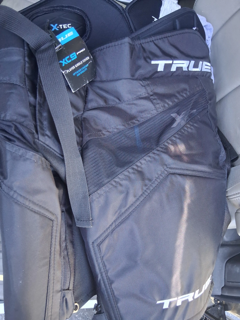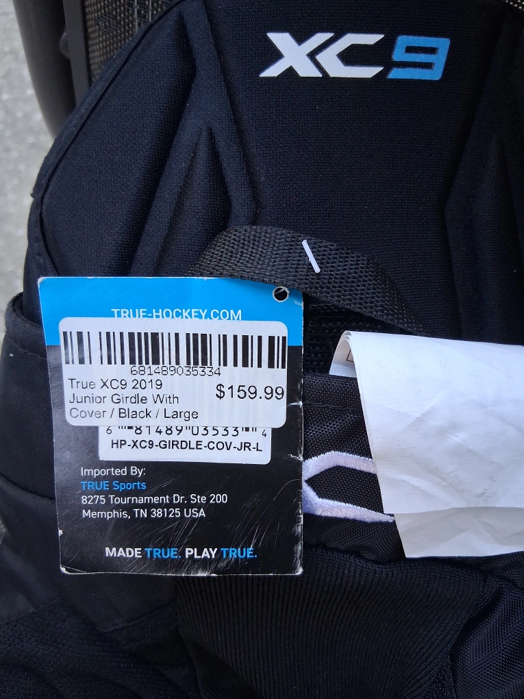 Selling a True XC9 Junior Girdle in size Large. The tag shows it was originally $159.99. It's black with white lettering. Perfect for young hockey players! $120 or h.o BRAND NEW