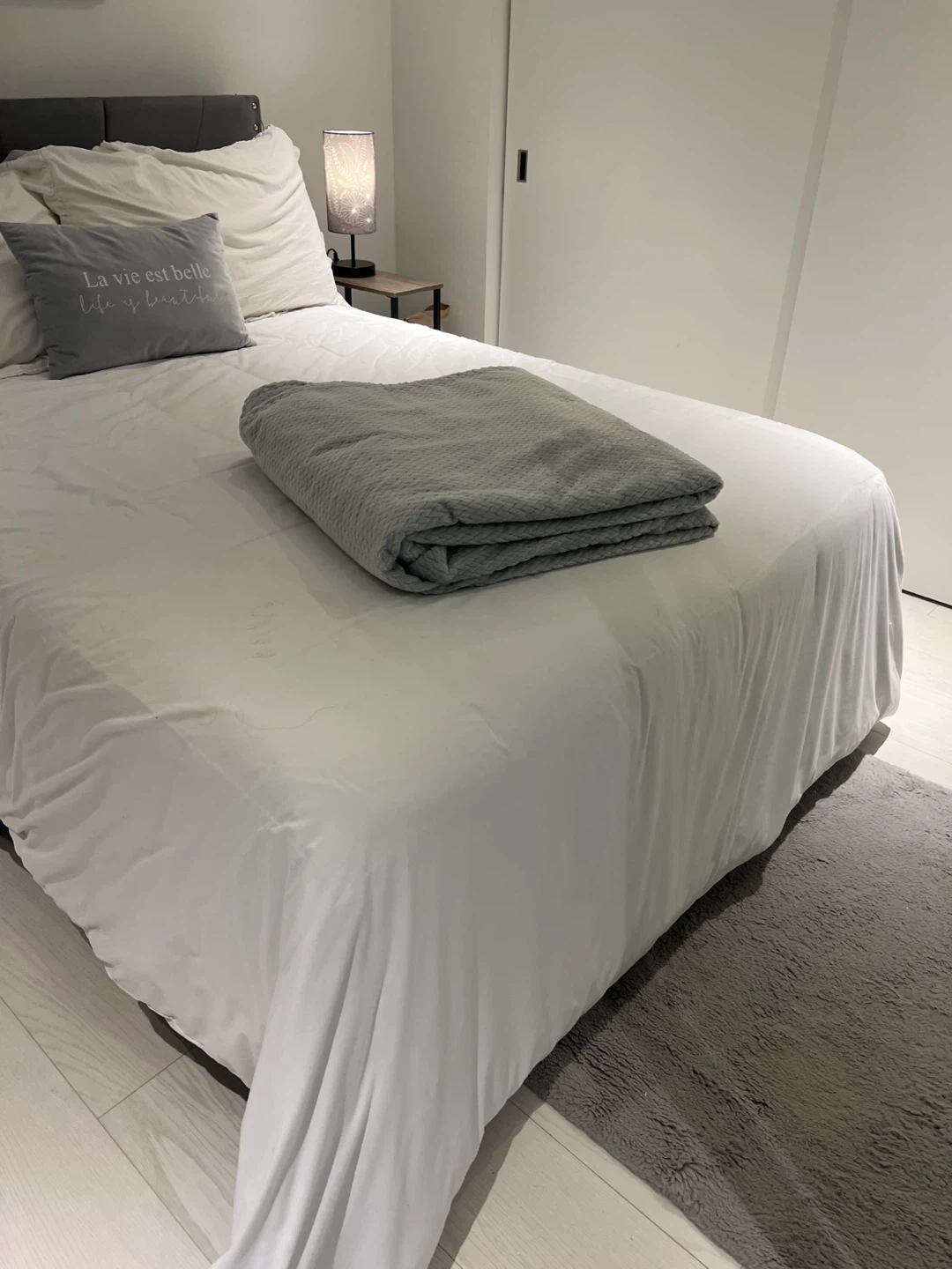 Grey Fleece Throw Blanket 86 x 86