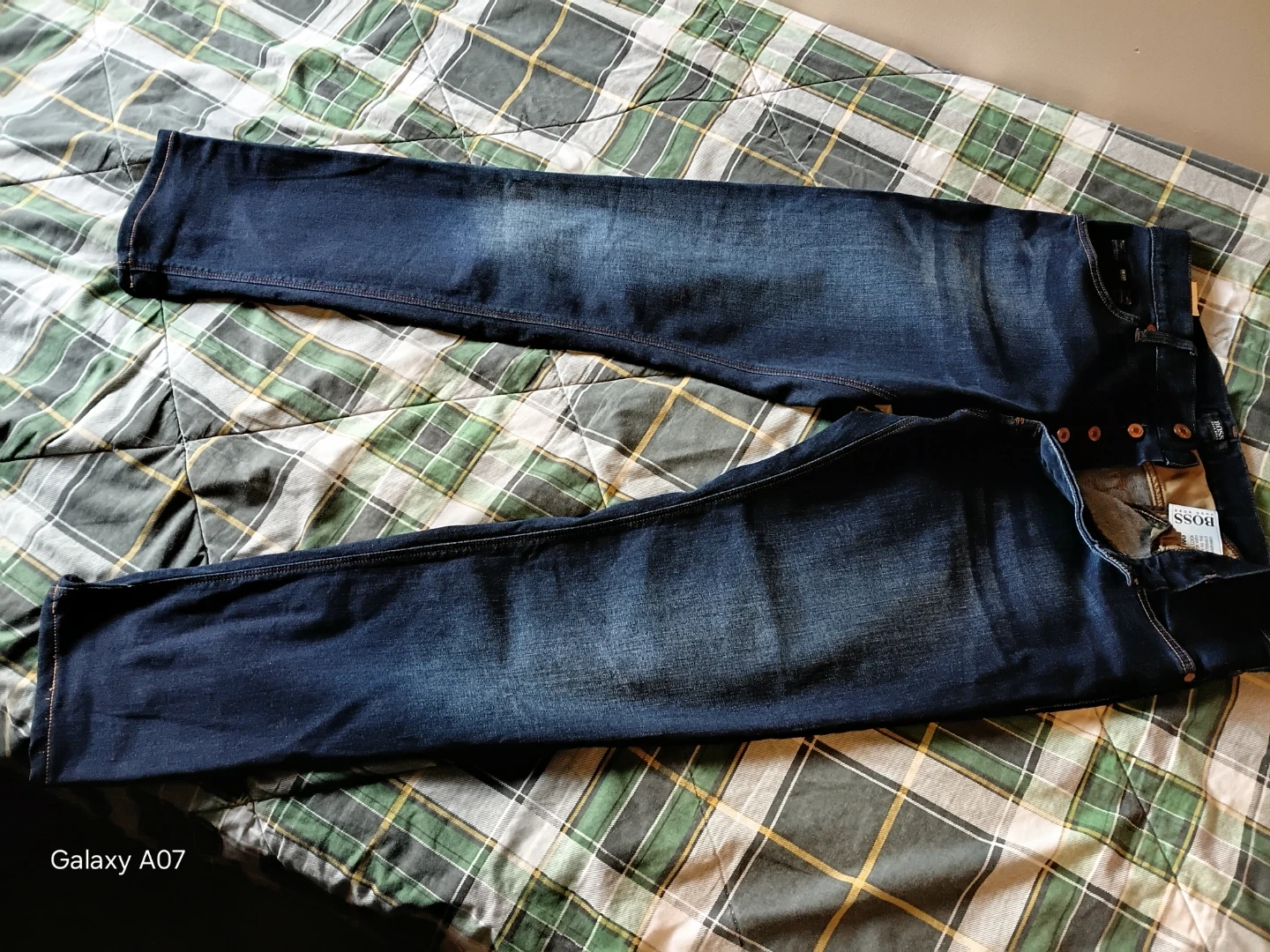 BOSS Hugo Boss men's dark wash jeans. These stylish jeans feature a classic button fly closure. Crafted from durable denim for everyday wear.