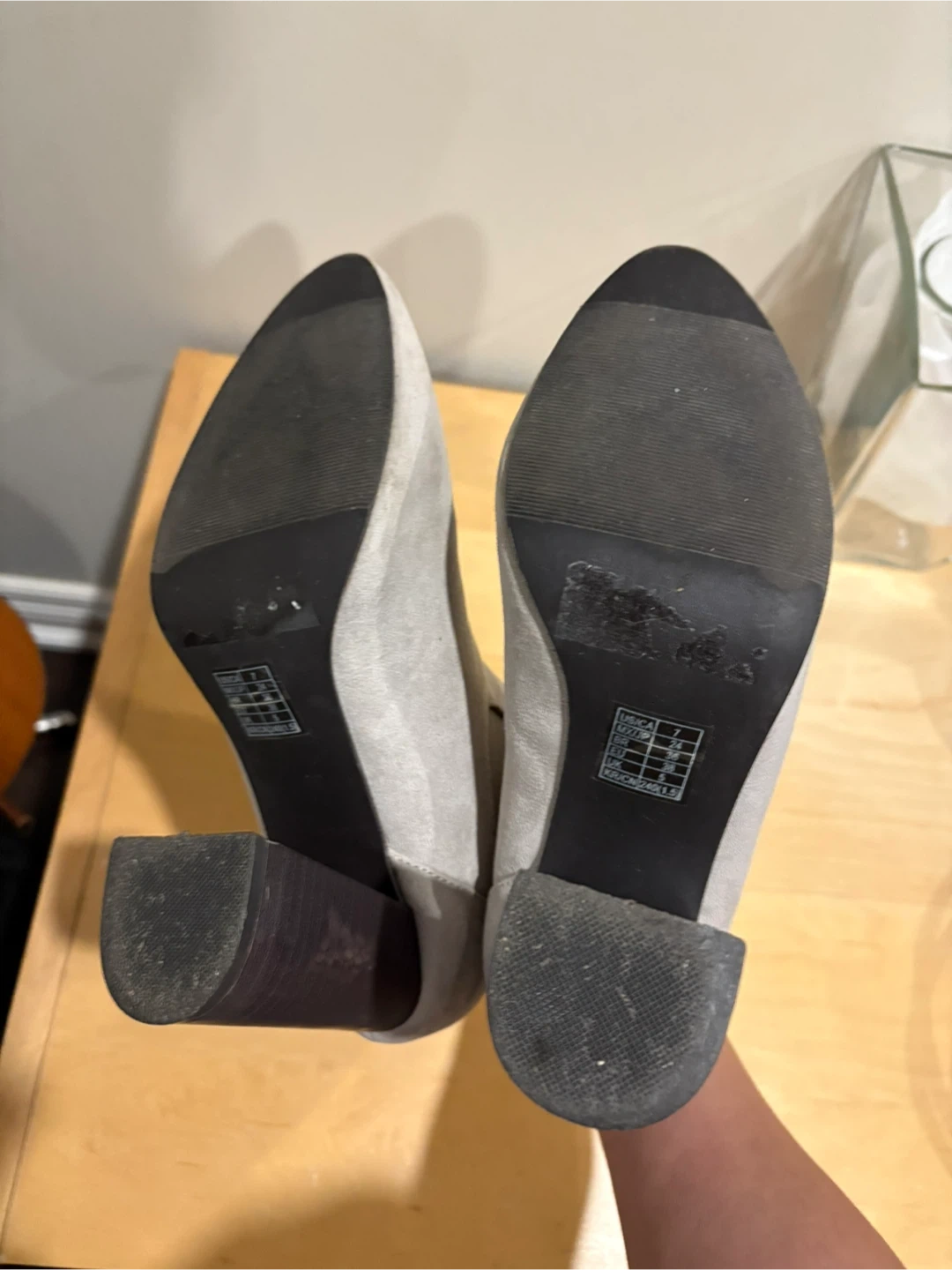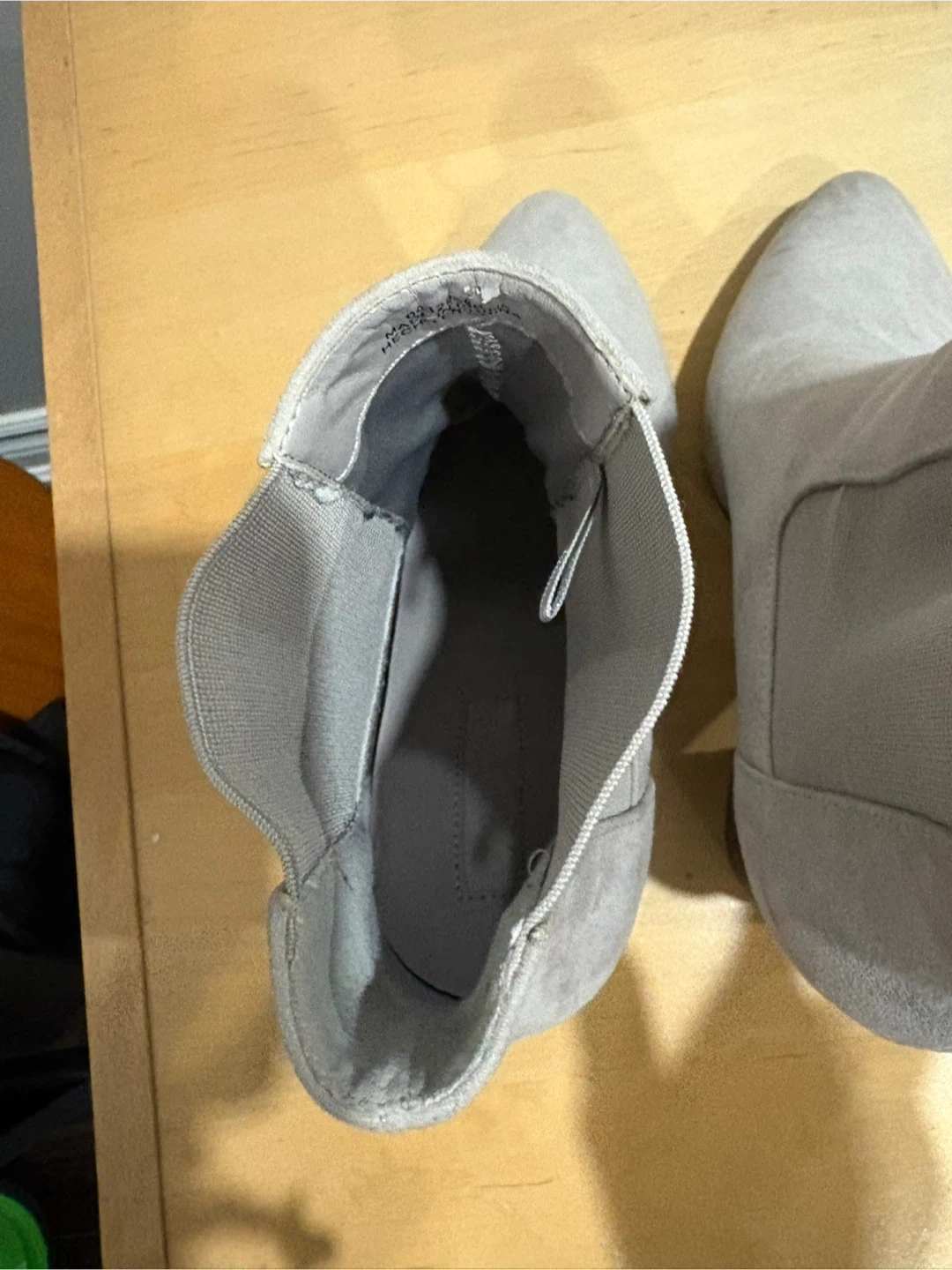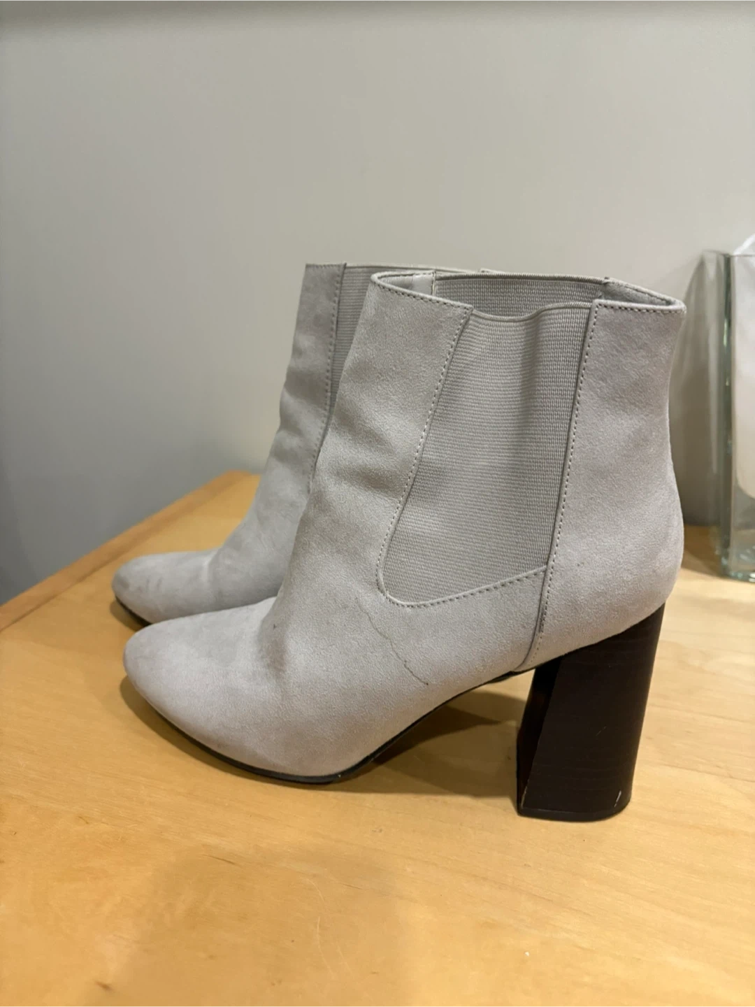 Suede ankle boots in a lovely cream colour. They are a size 7 and have a comfortable heel. Perfect for adding a bit of style to your outfits!