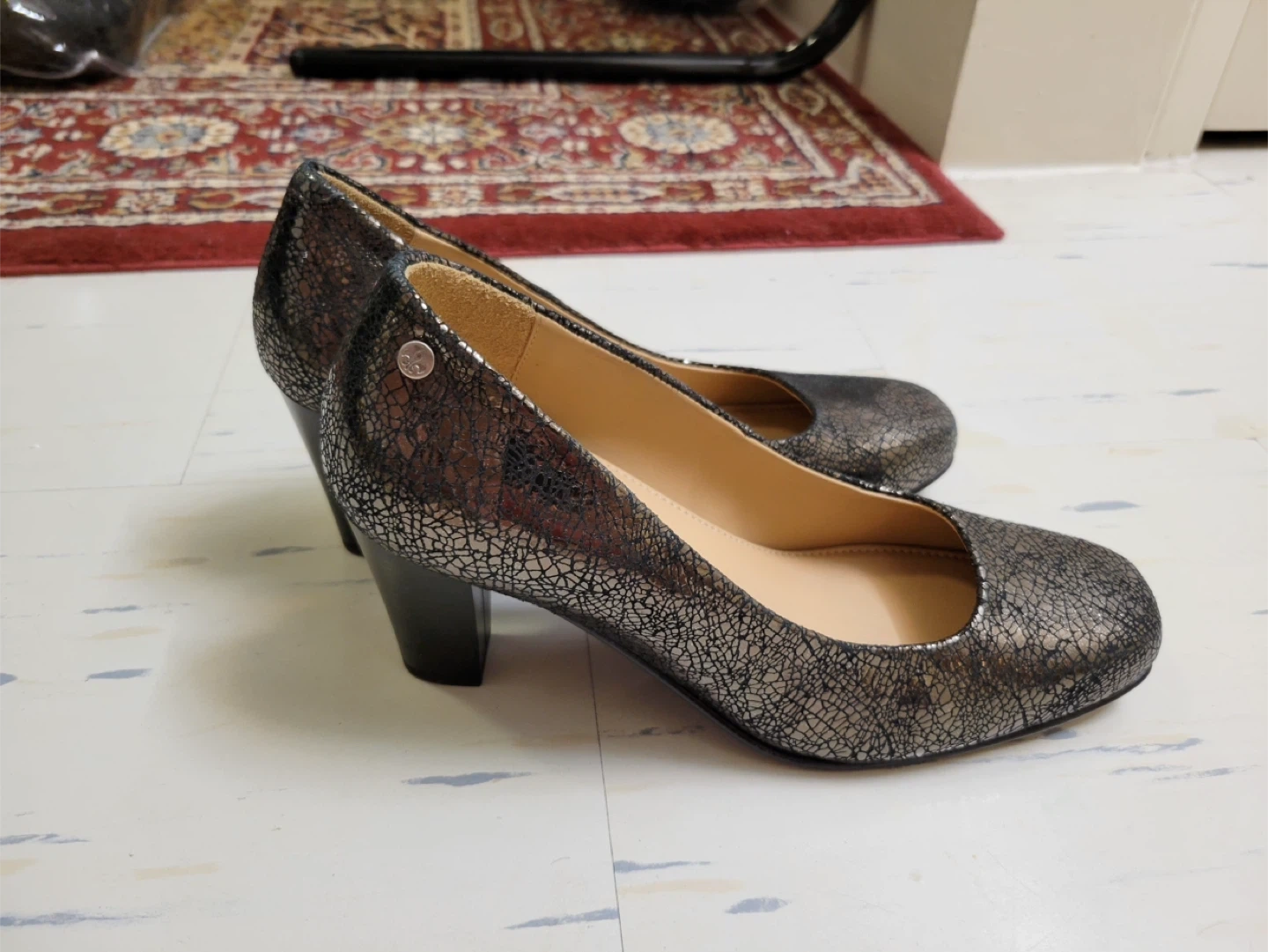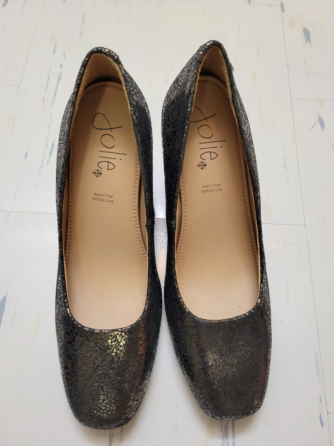 These Jolie women's heels feature a stylish crackle print design.They have a comfortable orthotic sole for all-day wear. The block heel provides a stable and fashionable lift.
