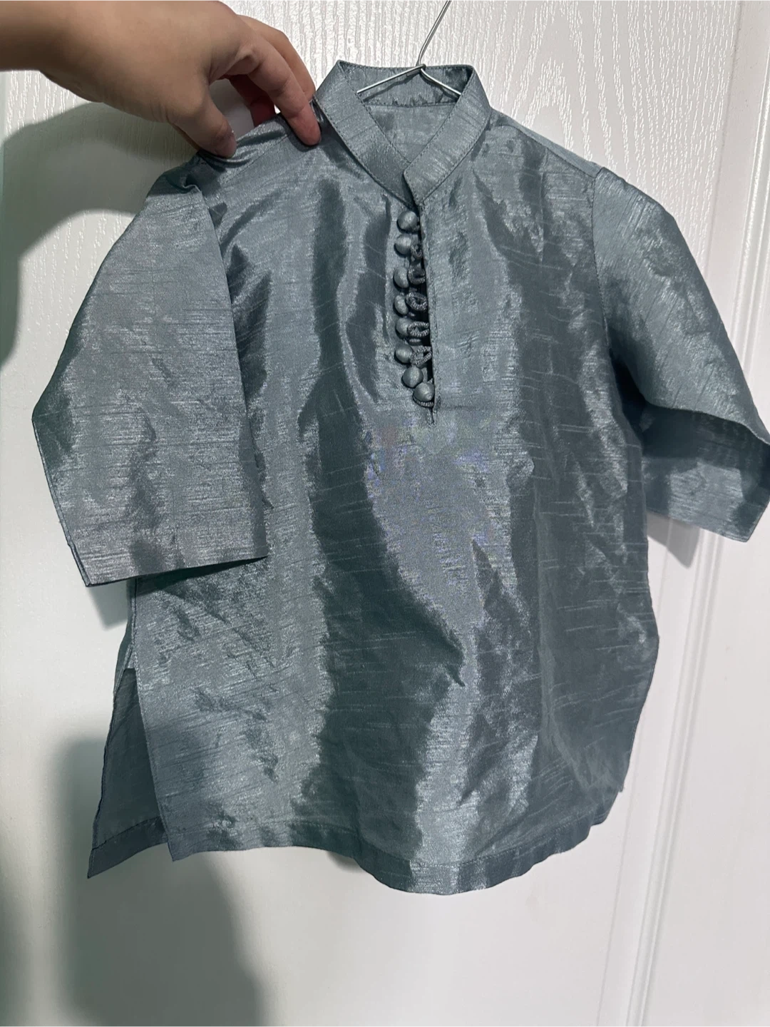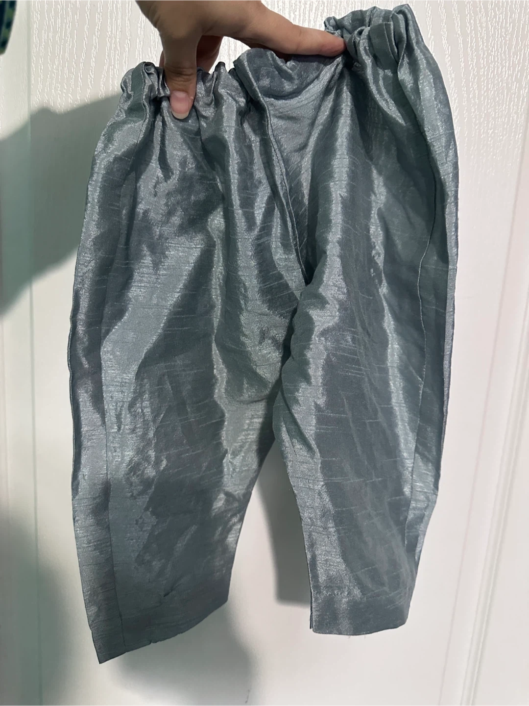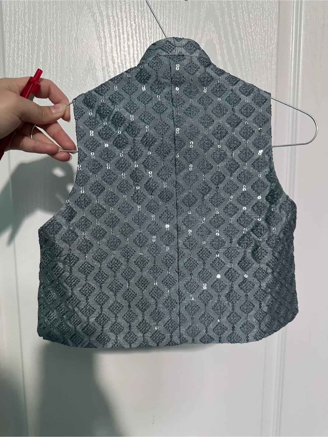 Boys kurta and vest set in grey colour. The vest features a diamond pattern with sequin embellishments. It's great for special occasions or festive events!