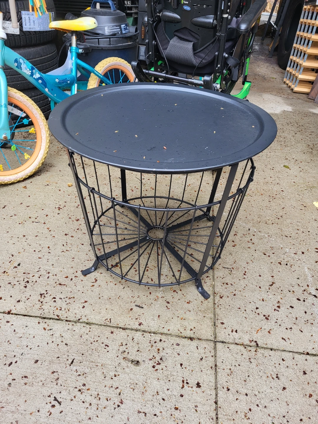 This black metal side table. It's perfect for outdoor patios or as extra storage.
