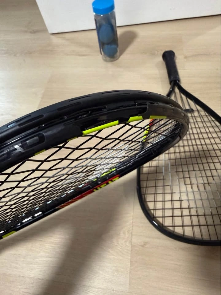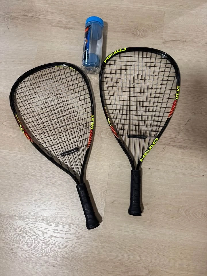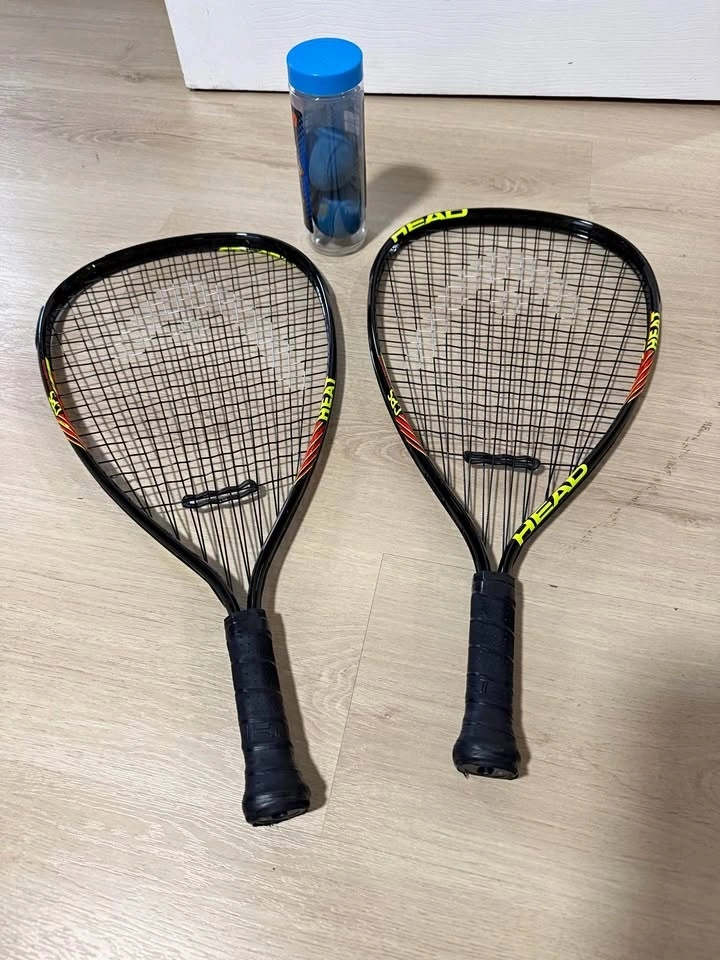 Complete starter set. Selling a pair of HEAD CPS racquets in great working condition. These are lightweight, powerful, and perfect for anyone from beginners to casual weekend players. Also includes 2 used Penn racquetballs. One racquet has a small cosmetic crack on the plastic bumper guard (does not affect the frame or strings).