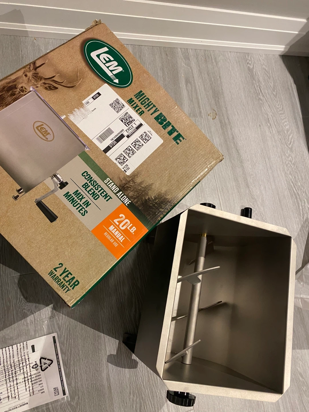 This LEM Mighty Bite Mixer is designed for consistent blending. It's a 20lb manual mixer for regular use. Never used. Manual mixer