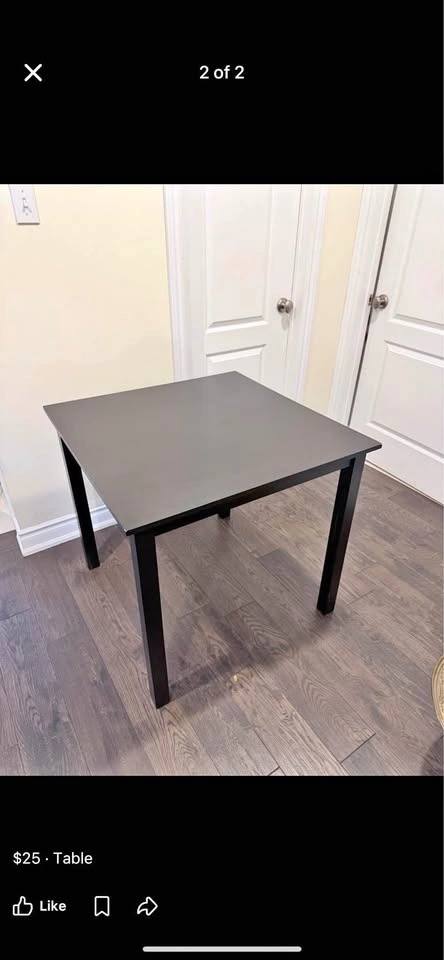 Sturdy black table in excellent condition — clean, well-maintained, and almost new. Perfect for a study area or small dining space. Already disassembled for easy transport. Ready for pickup.
