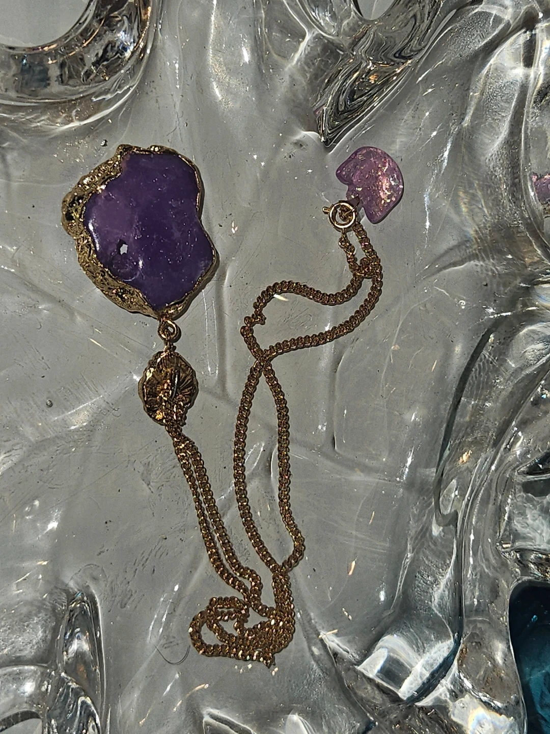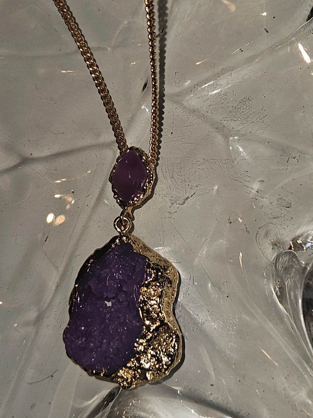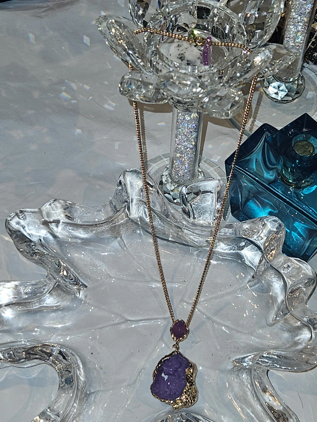 A beautiful silver gold plated chain necklace with a purple natural stone pendant. It's in great condition and ready to add a unique touch to your style!