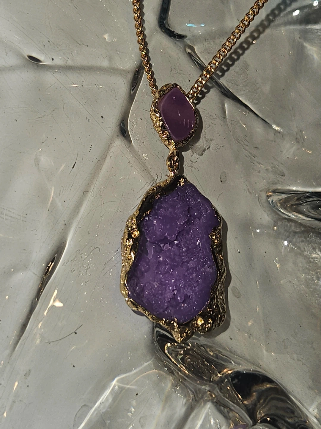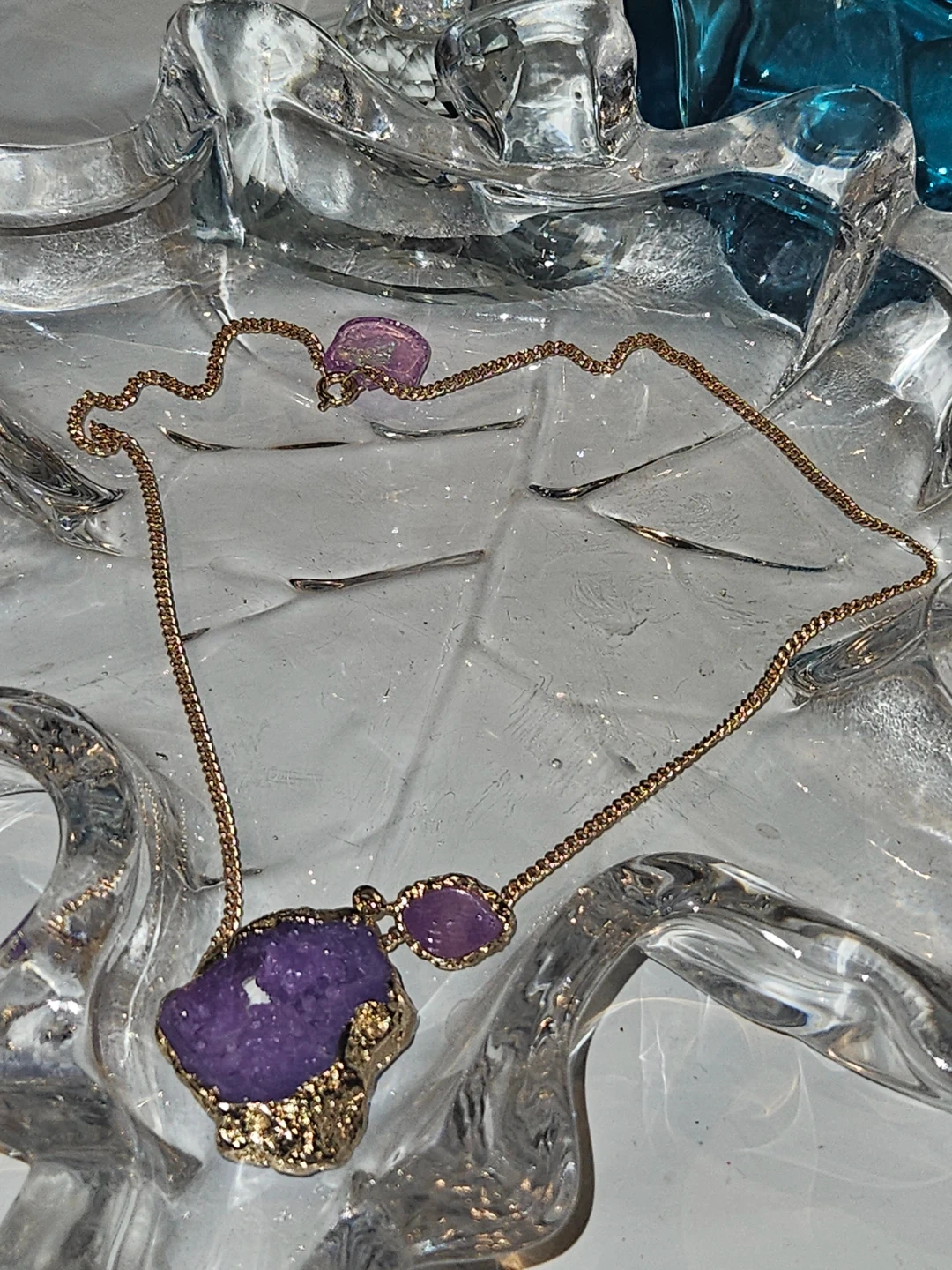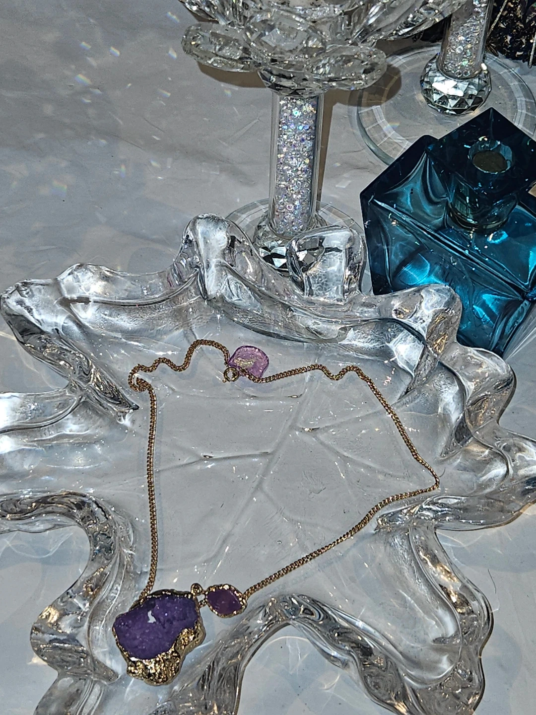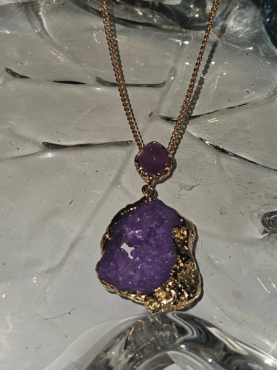 A beautiful silver gold plated chain necklace with a purple natural stone pendant. It's in great condition and ready to add a unique touch to your style!