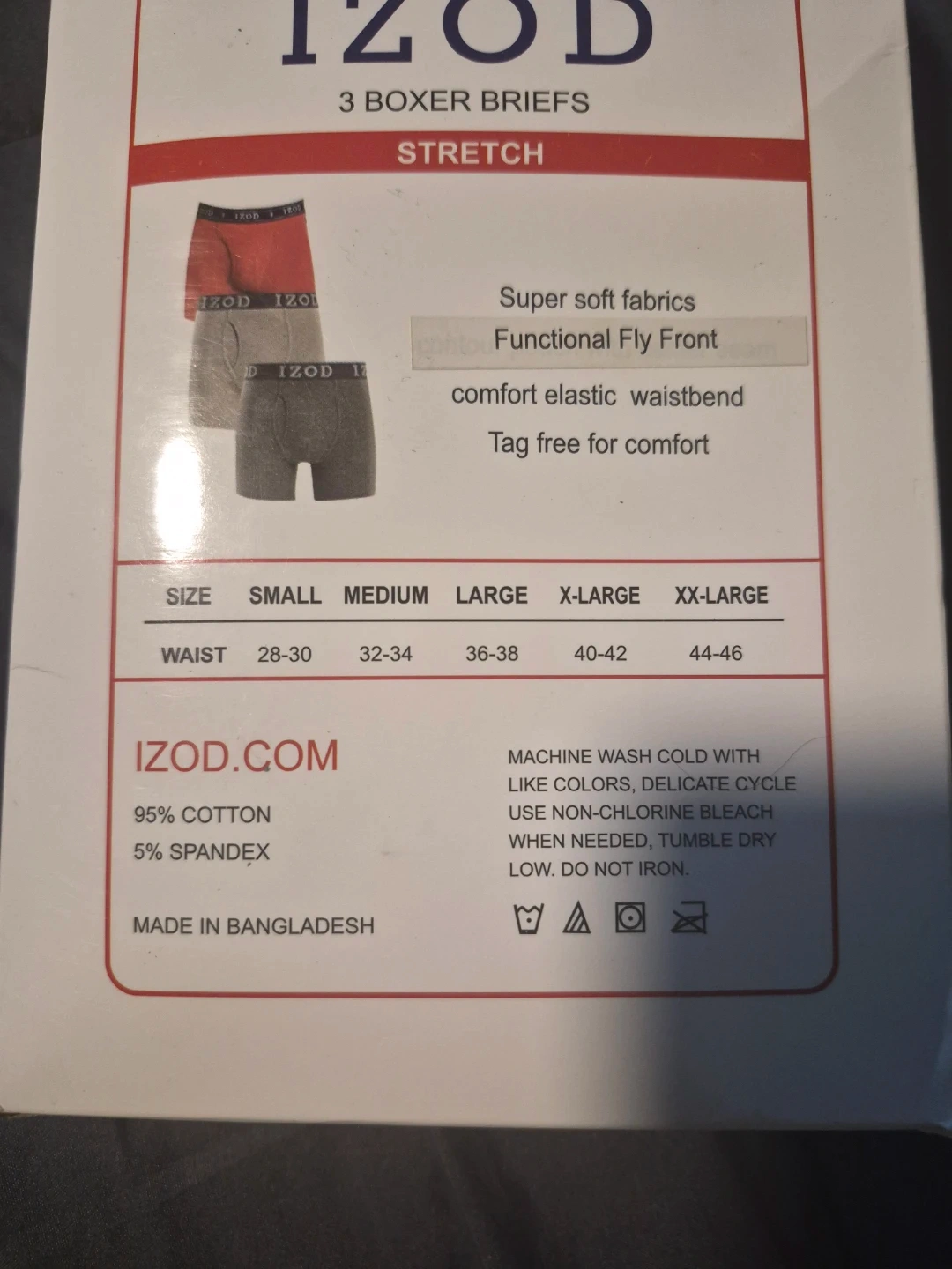Selling a brand new pack of IZOD boxer briefs! These are size large and come with 3 pairs in the pack. They're made from a super soft fabric with a functional fly front and comfortable elastic waistband. Tag free for extra comfort! Made of 95% cotton and 5% spandex