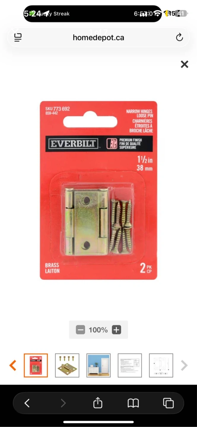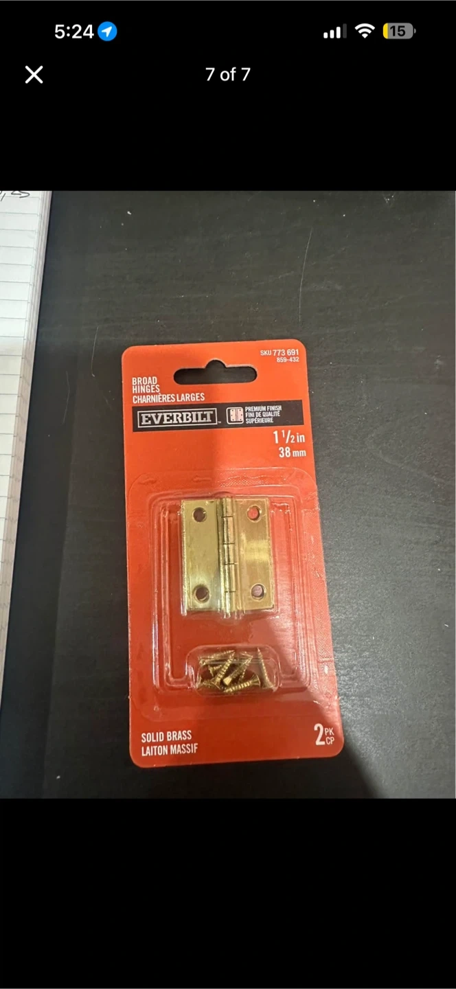 This is a 2-pack of Everbilt 1 1/2 inch narrow hinges. They come with screws and are made of brass. These hinges are ideal for general utility use and lightweight cabinet doors. Features a non-removable pin for security.