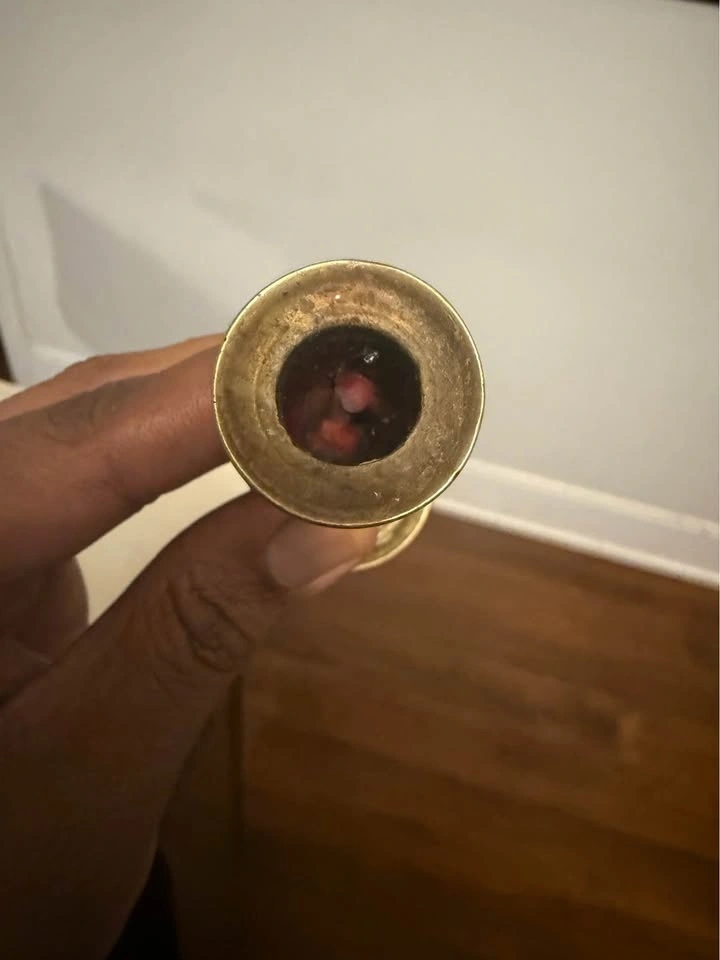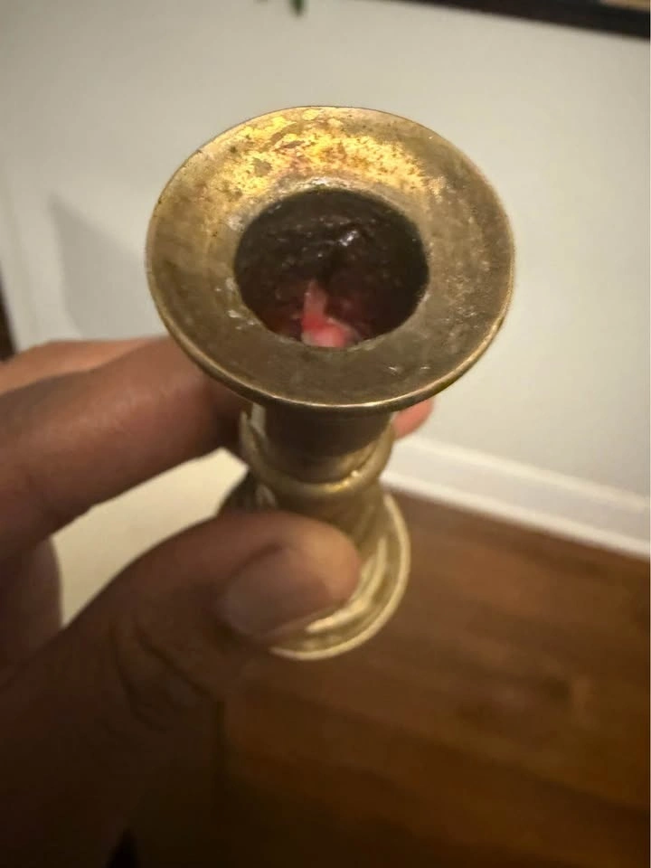 Vintage brass candle stick holder for smaller candle. Opening is 0.5 inch wide.