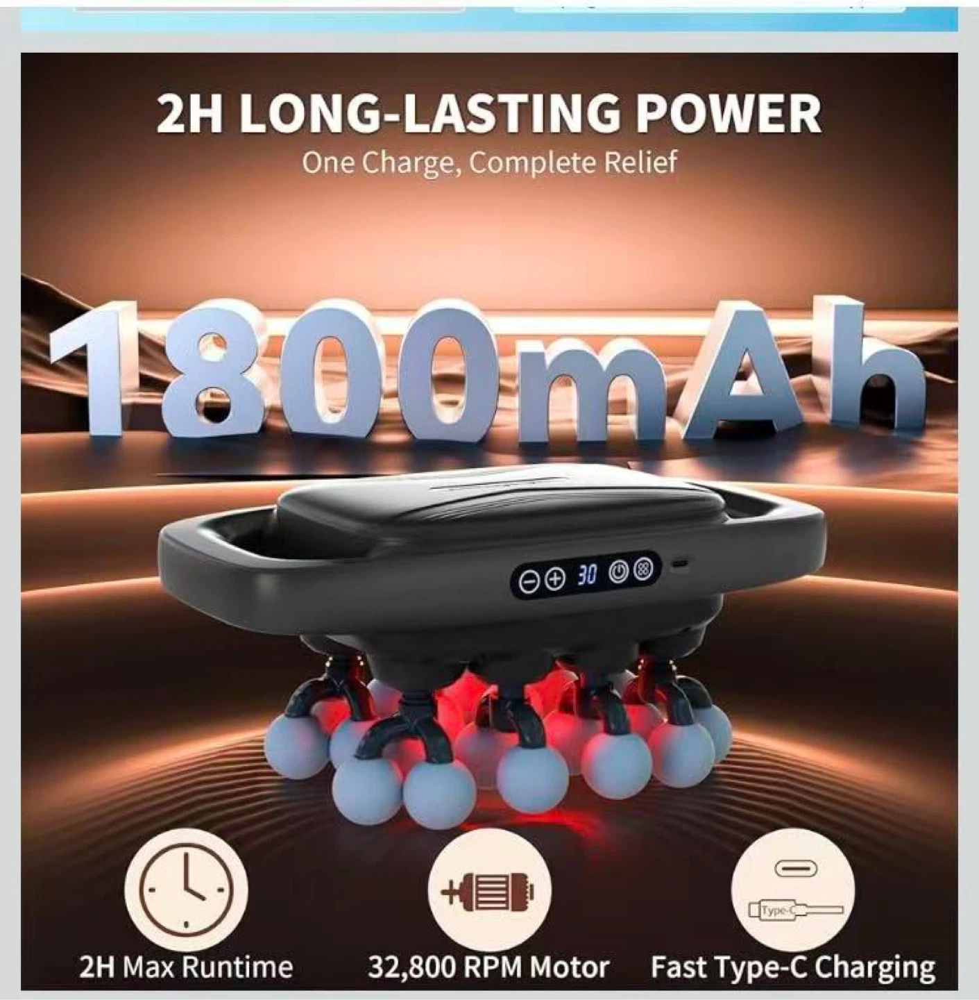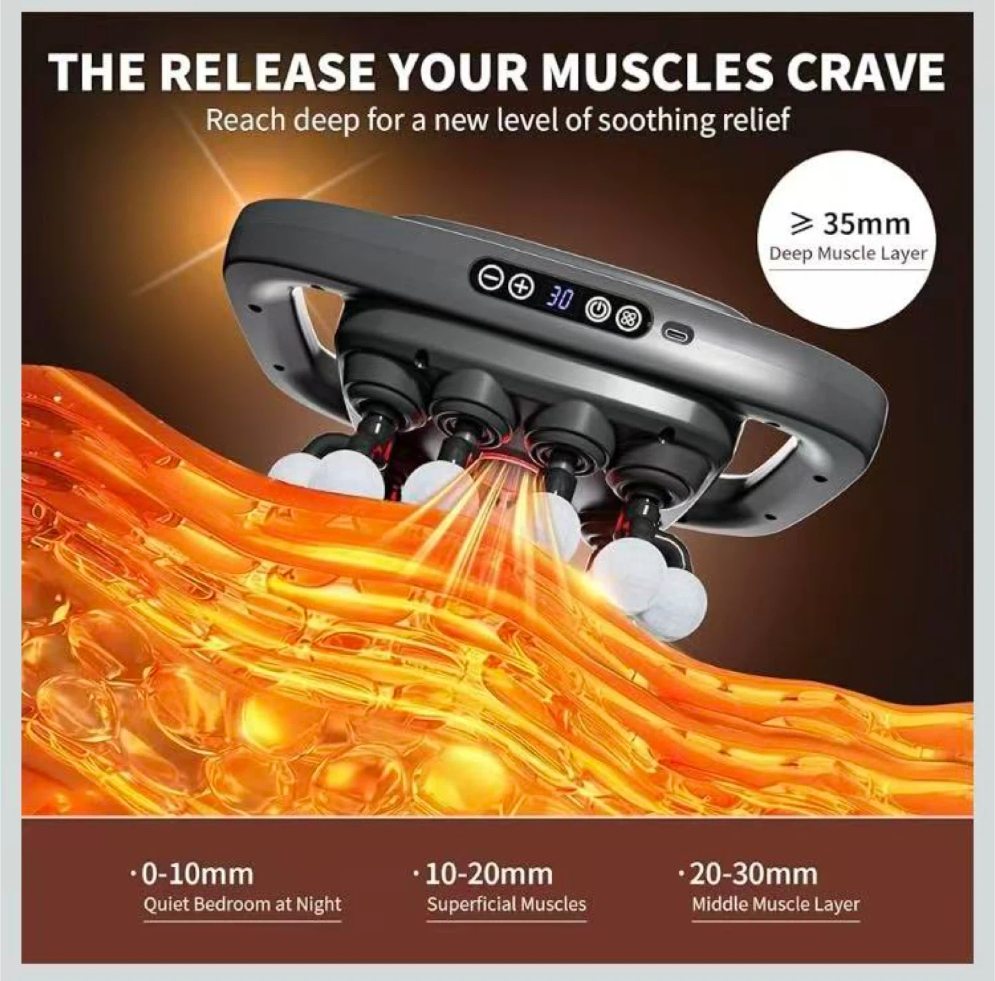 20-Head Massage Gun, 30 Intensity Levels 3 Modes, Deep Tissue Massager with 50KG Force & Noise-Free Motor for Neck Back Legs Shoulders, Portable for Full Body Muscle Recovery
