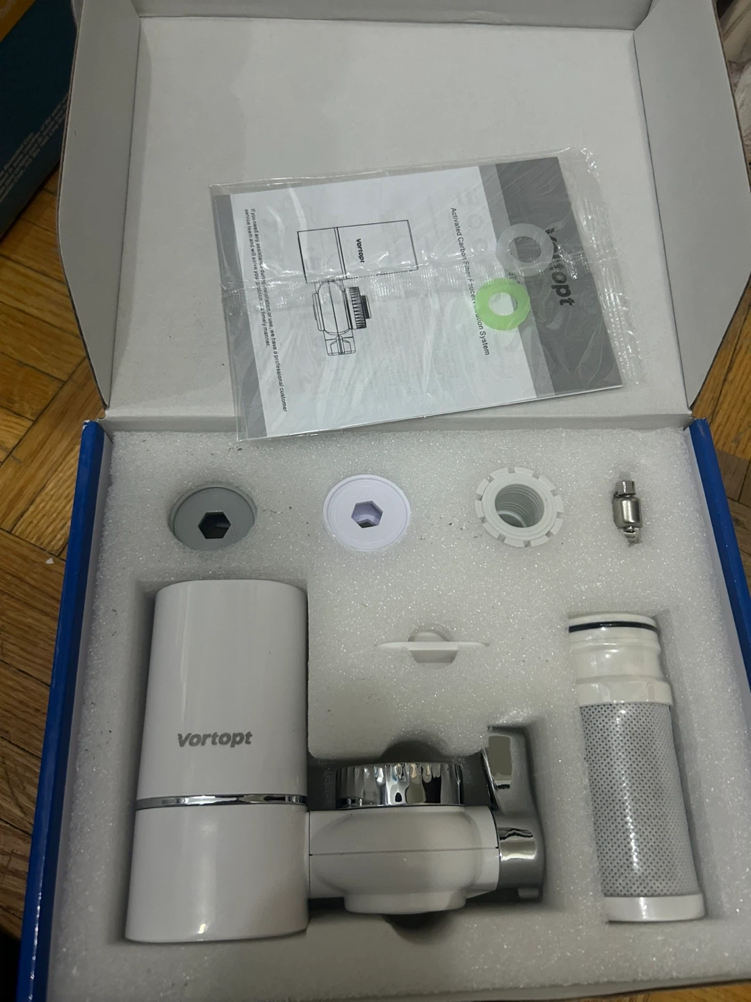 This Vortopt tap water purifier offers natural and physical filtration. It has a two-way water outlet and an easy-to-replace filter. Great for brushing teeth, washing dishes, rice, and cooking!