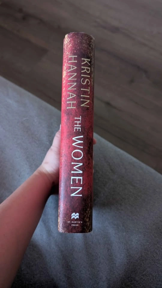 Bestselling Kristin Hannah novel 'The Women'. Hardcover edition. Has red and gold cover design. Back cover includes praise from other authors. Original retail price $40.