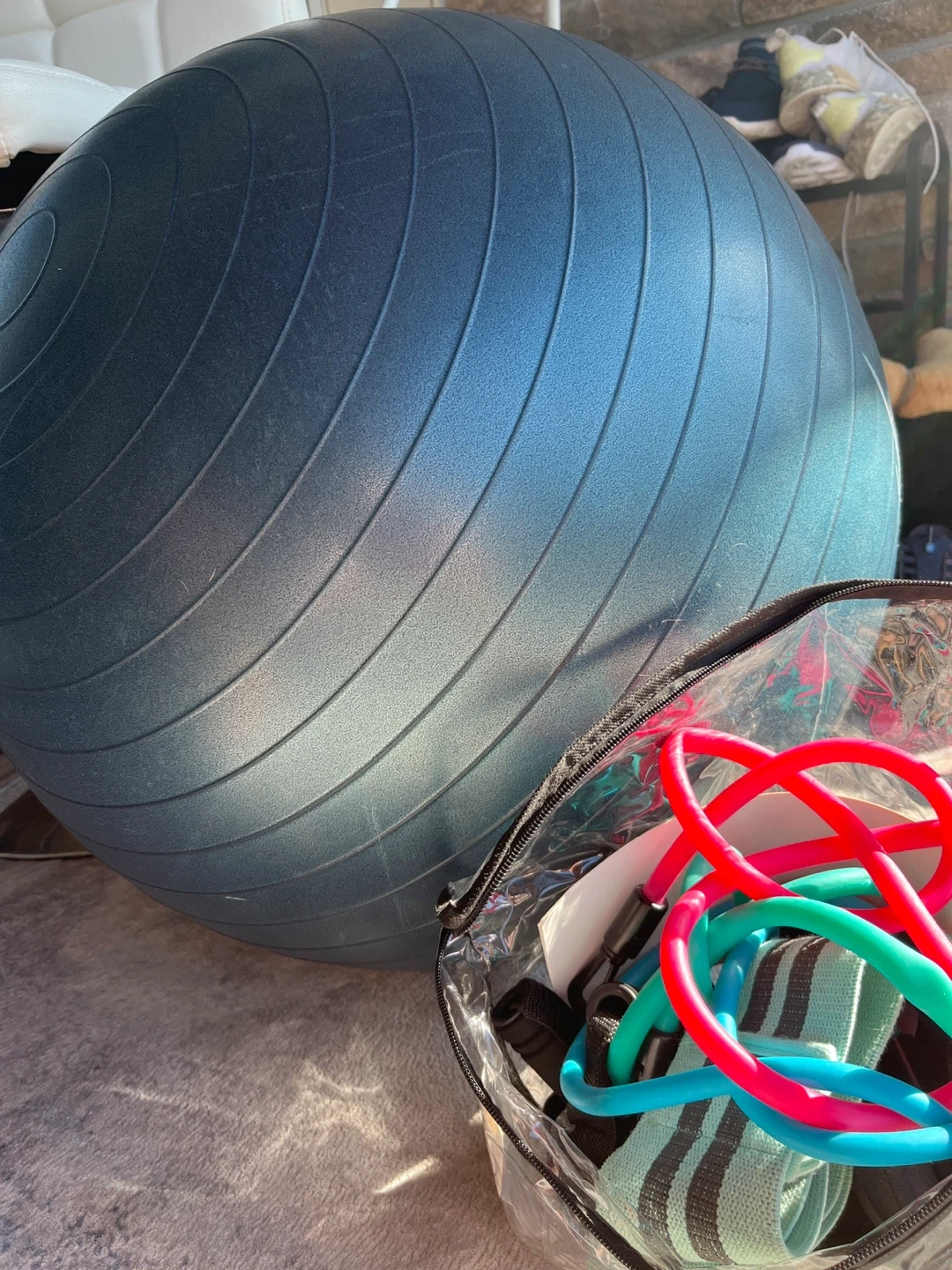Blue Exercise Ball with Resistance Bands and Bag