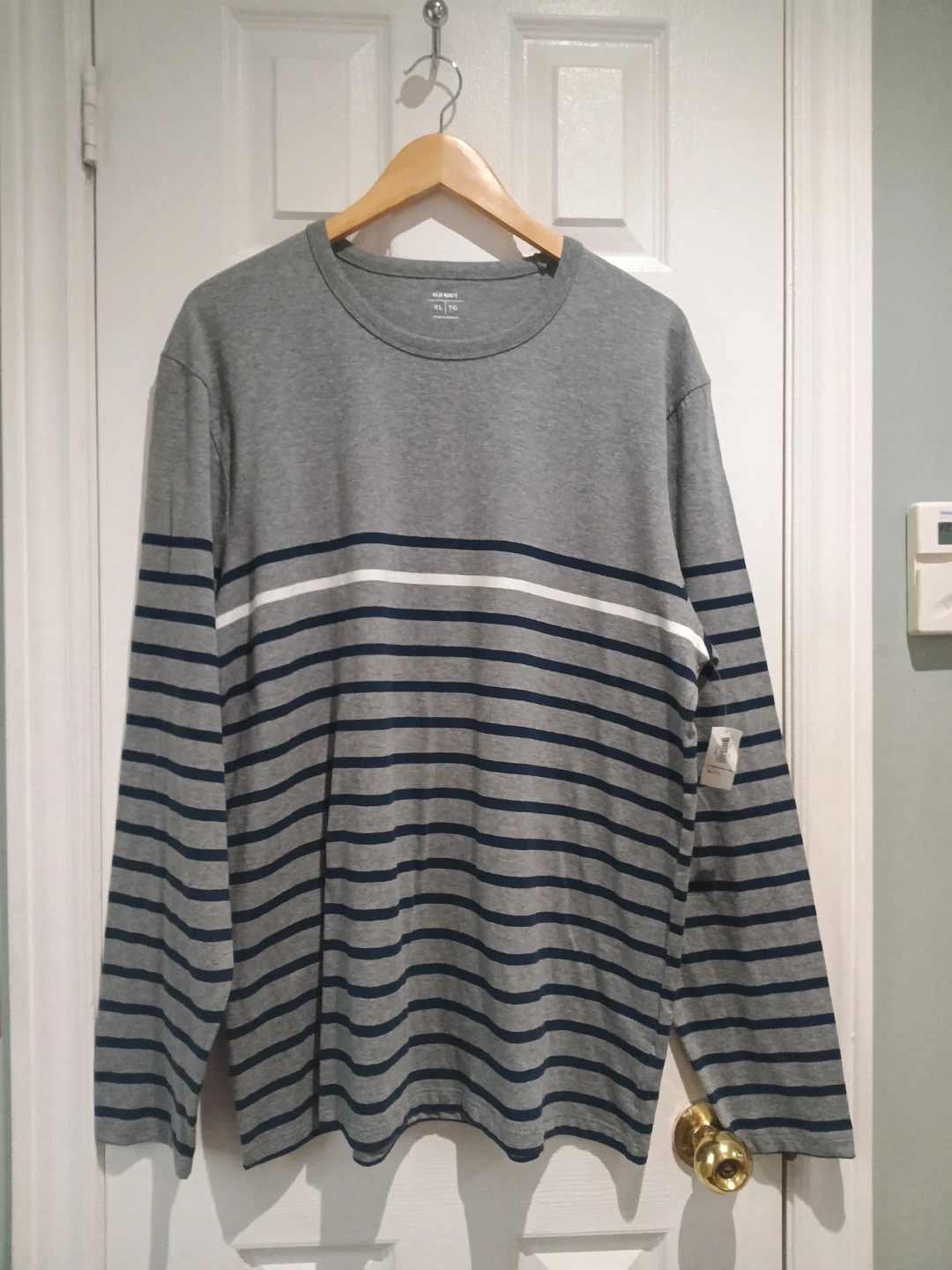 Buy & SellBrand New Old Navy Men's Striped Long Sleeve T-ShirtBrand New Old Navy Men's Striped Long Sleeve T-Shirt$15This Old Navy long sleeve t-shirt. Features a grey base with navy and white stripes. This shirt is perfect for casual wear.ConditionNewSizeXLBrandOld NavyWHERE TO MEETTim HortonsView MapSELLERverifiedShellBram E741 review0 chats·1 favorites·35 viewsSEND CHAT TO SELLERHi Shell! I’m interested in your listing.Hi Shell! I’m interested in your listing.Get the Karrot app to chatSign In to chat
