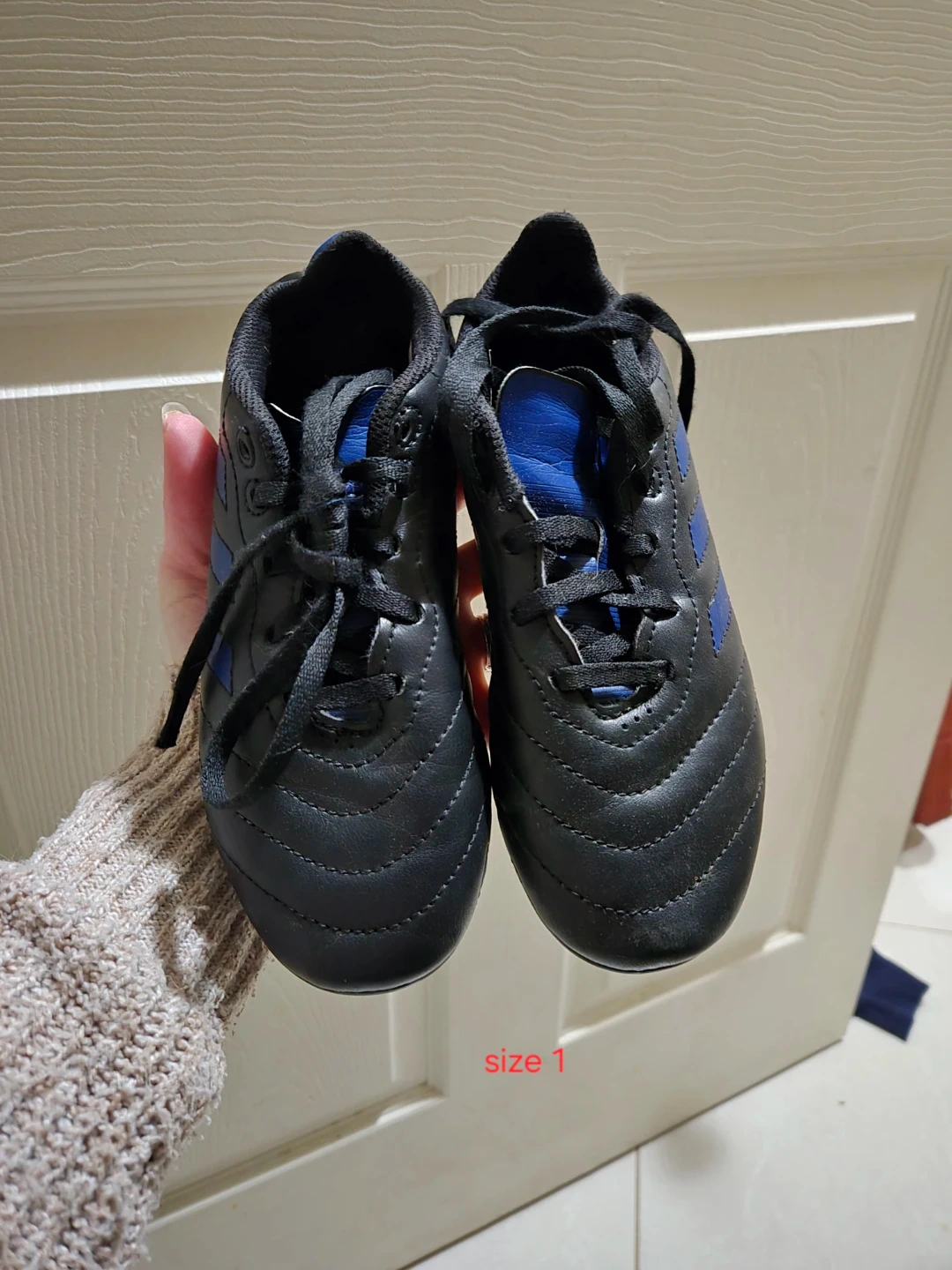 Buy & SellAdidas Soccer Cleats Size 1Adidas Soccer Cleats Size 1$10Black Adidas soccer cleats with blue accents. Size 1. These cleats are great for playing soccer.ConditionGoodWHERE TO MEETCheck LocationView MapSELLERRachelSardis200 reviews0 chats·0 favorites·1 viewsSEND CHAT TO SELLERHi Rachel! I’m interested in your listing.Hi Rachel! I’m interested in your listing.Get the Karrot app to chatSign In to chat