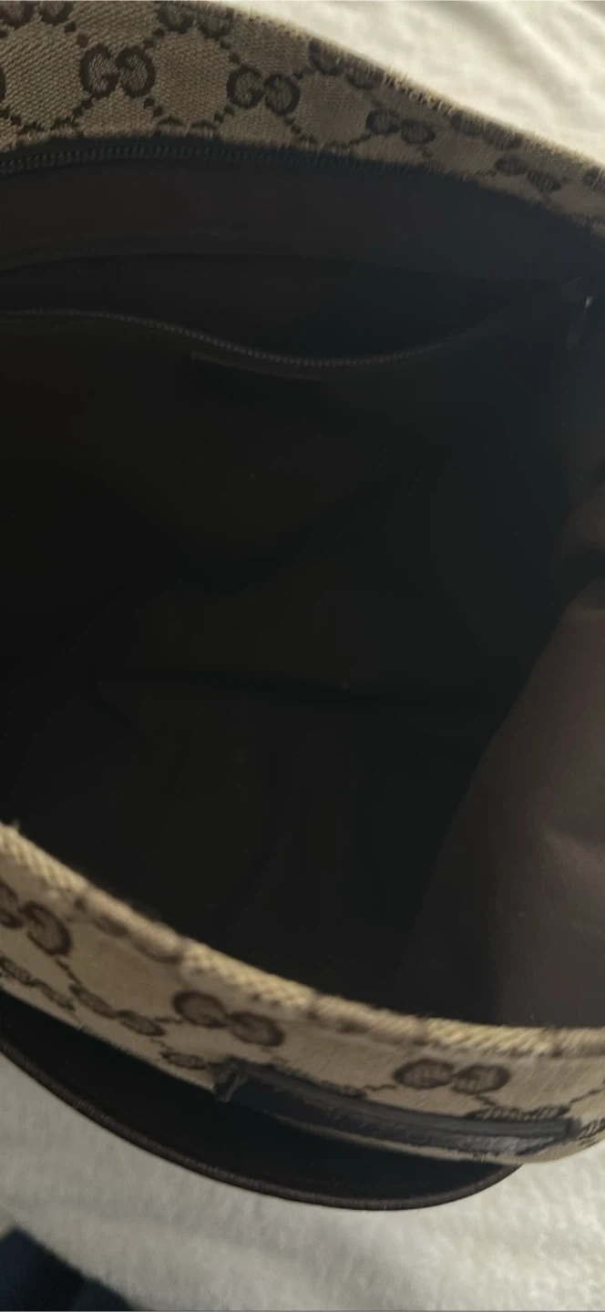 Gucci messenger bag crafted from monogram canvas. Features the signature green and red stripe detail on the strap and silver hardware. Interior includes a zip pocket. Perfect for everyday use!