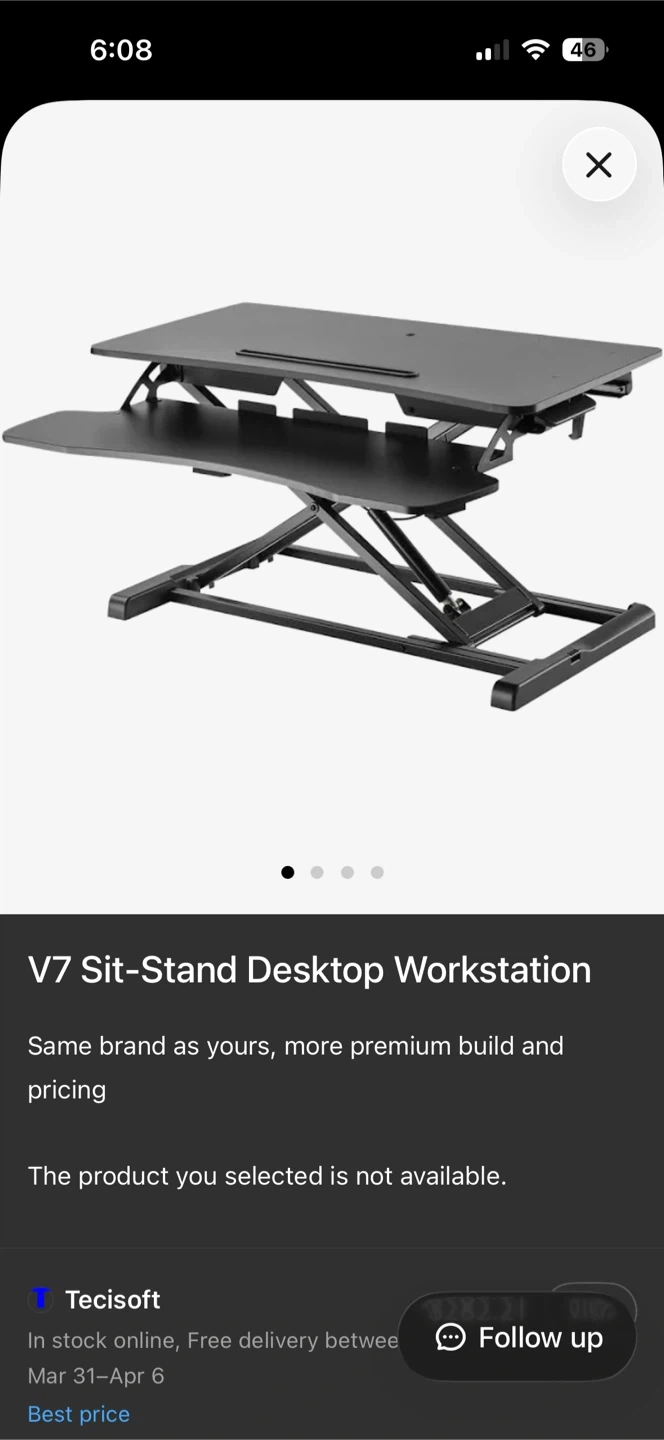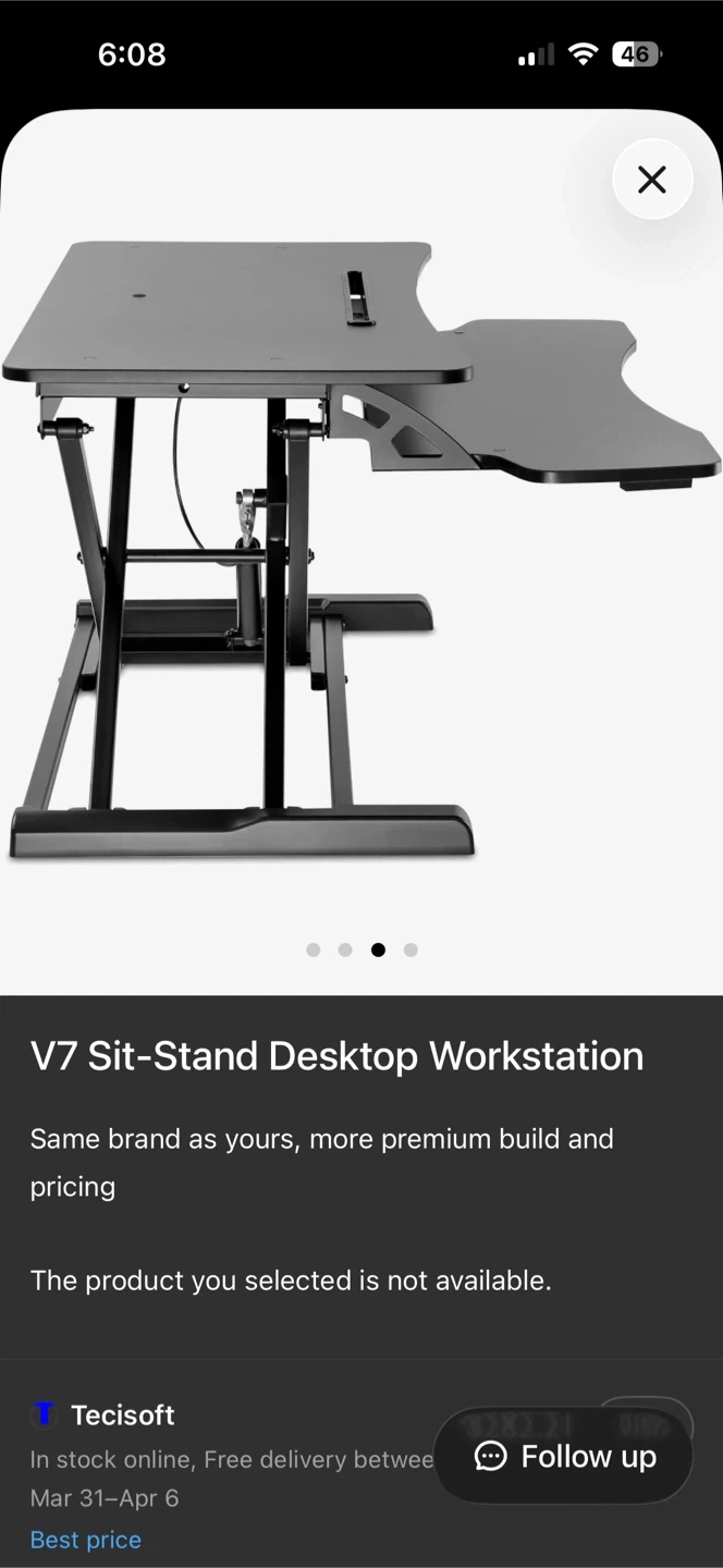 V7 desktop workstation that raises and lowers for sit or stand use. Black metal construction. Includes keyboard tray. Height adjustable for ergonomic comfort.