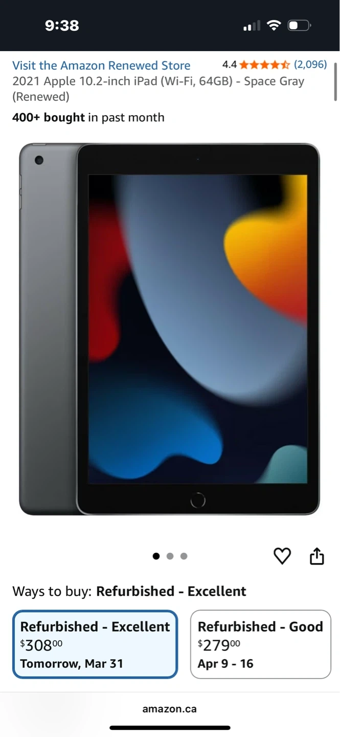 Apple iPad 9th Generation. 64GB. Model #A2602 Rarely ever used. Retail is $599.99 CAD + TAX I added a photo(last photo click to expand) of an Amazon Refurbished exact same iPad of mine, except mine is perfect and has barely been used not refurbished. That one is going for $308.00. STAND UP CASE & PROTECTOR INCLUDED PERFECT MINT CONDITION EVERYTHING.