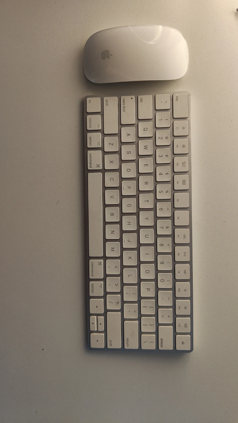 Functional Apple Magic Keyboard and Magic Mouse. Keyboard is wireless. Mouse is wireless too. Both connect easily to your Apple devices. Great for a desktop setup.