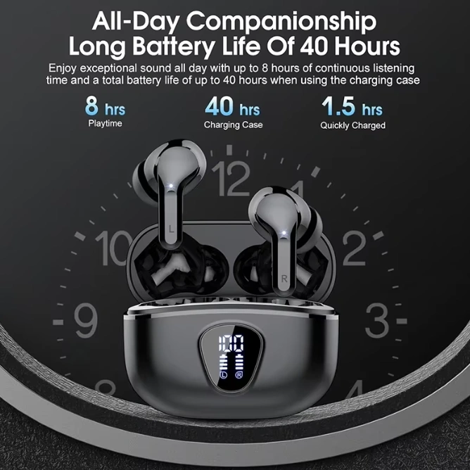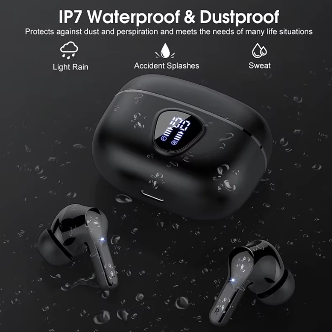 Brand new wireless Bluetooth earbuds with IP7 waterproof and dustproof protection, making them perfect for workouts, rain, and everyday use. The sleek charging case features an LED battery display, while the earbuds deliver clear sound and a secure, comfortable fit. Great for music, calls, and the gym, with fast pairing and long-lasting battery life
