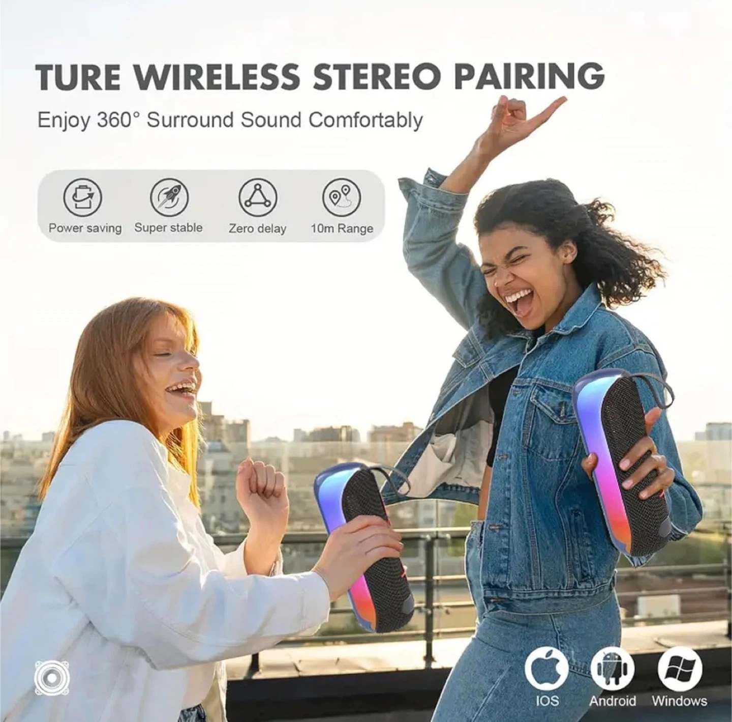 Bluetooth Speakers, Portable Wireless Stereo Speaker with Colorful Lights, IPX4 Waterproof, White Elephant Gifts for Adults, HD Sound, TWS Pair, for Home/Party/Outdoor