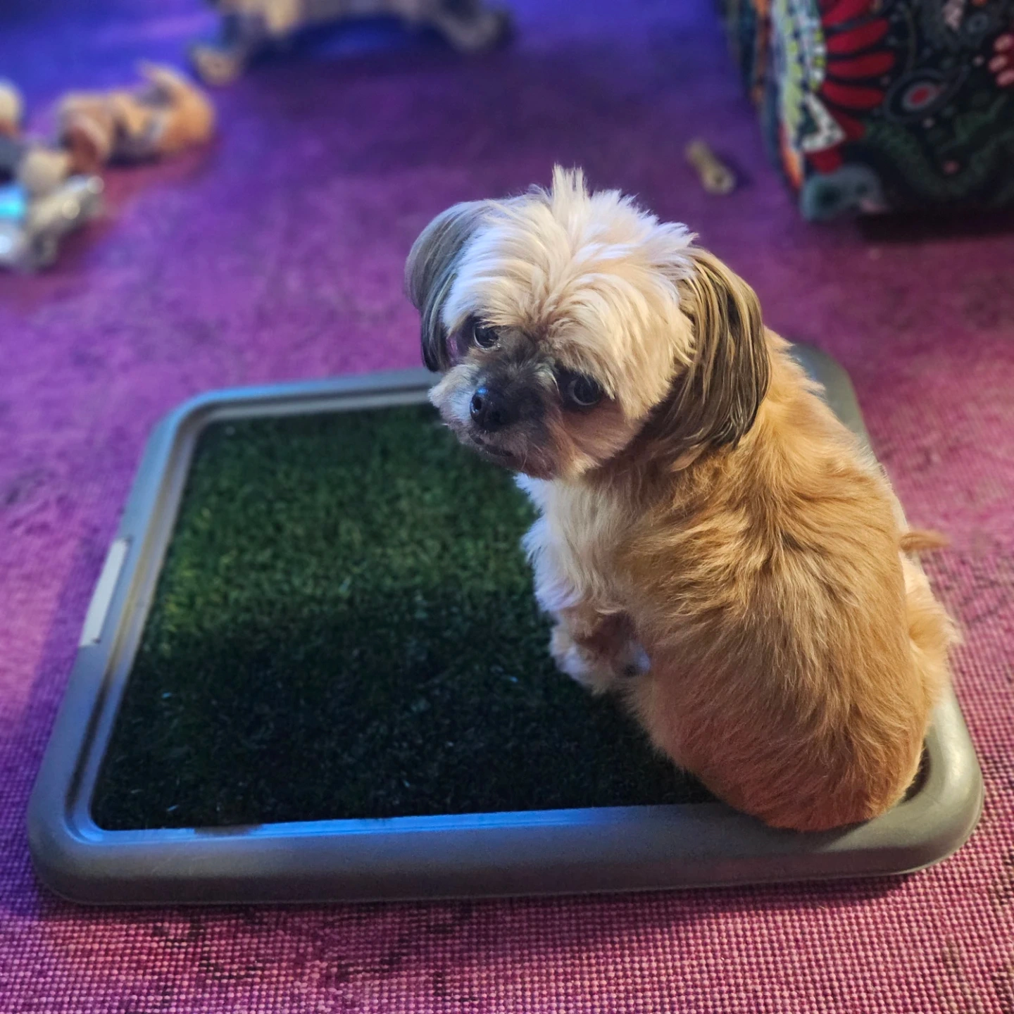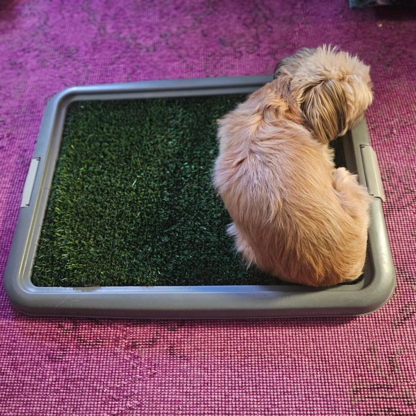 Selling a dog potty training pad. It's in great condition and perfect for training your furry friend! It includes a frame, grid, and base.