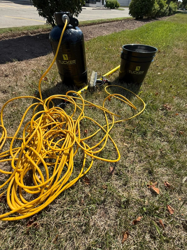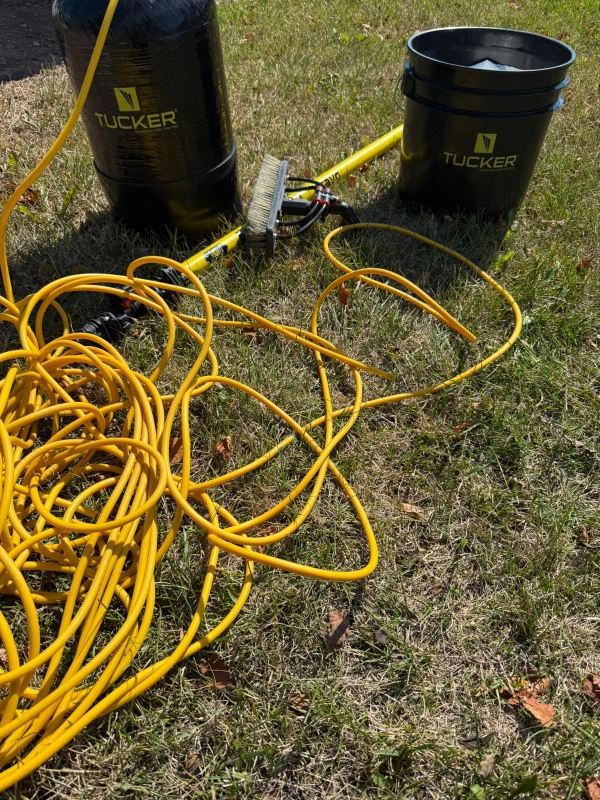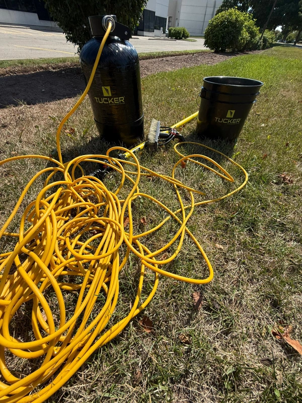 Selling a Tucker Bravo window cleaning system! This setup includes everything you need to get started with professional window cleaning. It features the Tucker Bravo pole, a water tank, a brush, and all the necessary hoses and connections. It's perfect for both residential and commercial use